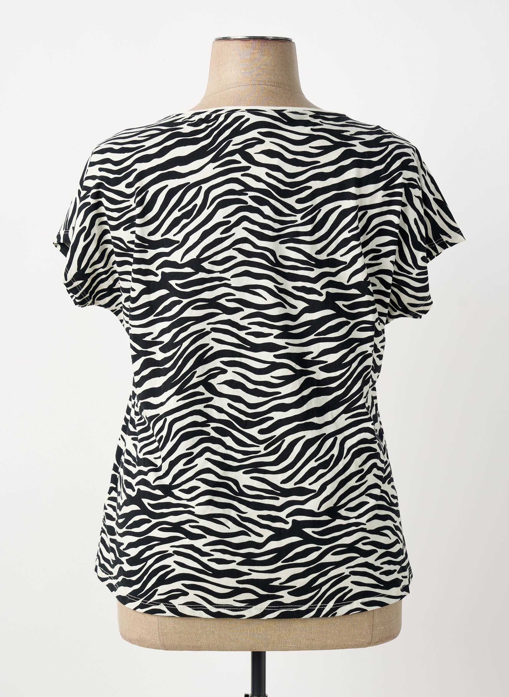 Ce T-shirt au motif zèbre s’accorde parfaitement avec un jean brut ou un pantalon noir pour une allure urbaine et chic, et se glisse facilement sous une veste unie pour valoriser son imprimé. Pour un look plus décontracté, pensez à l’associer à un short en denim ou une jupe sobre et des baskets blanches. Ajoutez quelques accessoires minimalistes pour compléter la silhouette, et vous voilà prête à adopter une tendance forte sans effort.
