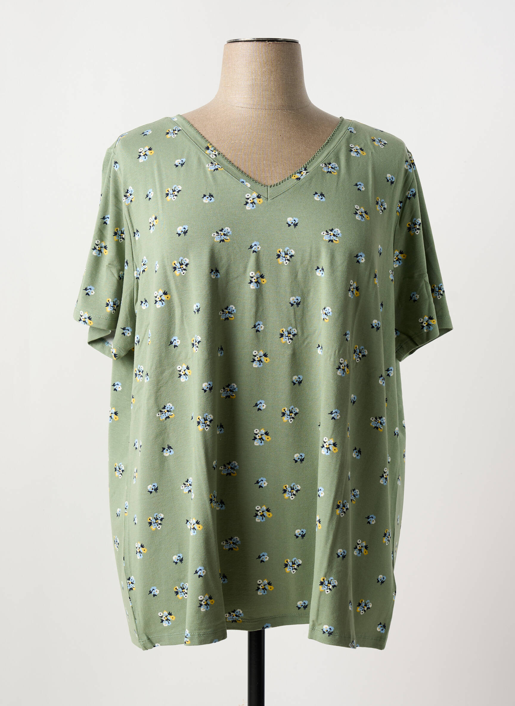 Profitez d’un bon plan mode avec ce T-shirt SHEEGO pour femme, une pièce tendance à prix mini. Son joli coloris vert doux et son imprimé fleuri discret apportent une touche féminine et fraîche à vos tenues du quotidien, tandis que la coupe décontractée et le col en V assurent un confort optimal en toutes circonstances. Ne passez pas à côté de cette occasion d’ajouter une pièce originale et économique à votre dressing !