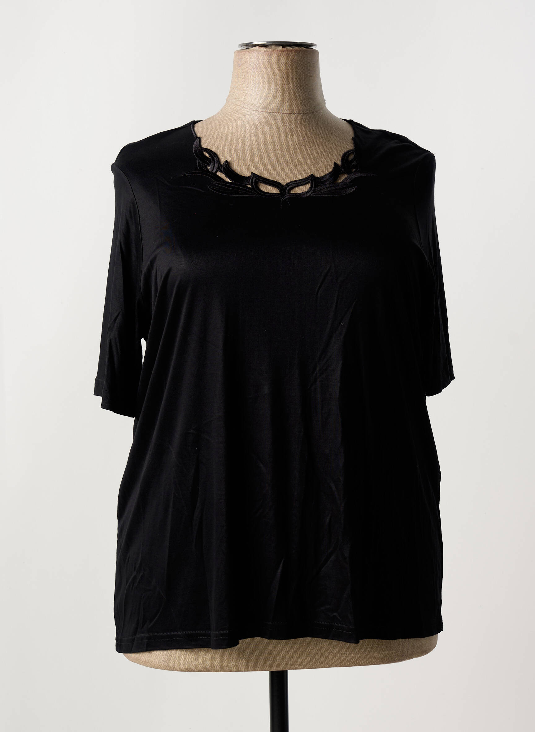 Ce T-shirt noir se porte aussi bien rentré dans un jean taille haute ou une jupe fluide pour une allure décontractée et moderne. Il s’accorde facilement avec un blazer pour un look plus habillé ou avec un pantalon imprimé pour jouer sur les contrastes. Pour compléter, optez pour des accessoires dorés ou colorés afin de mettre en valeur son encolure travaillée et jouez la superposition avec des vestes structurées ou un gilet léger lors des journées plus fraîches.
