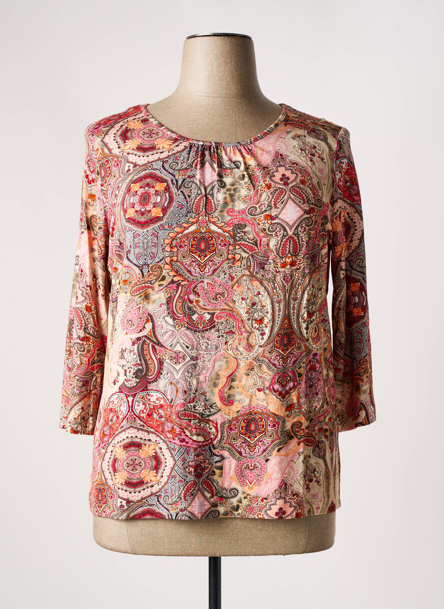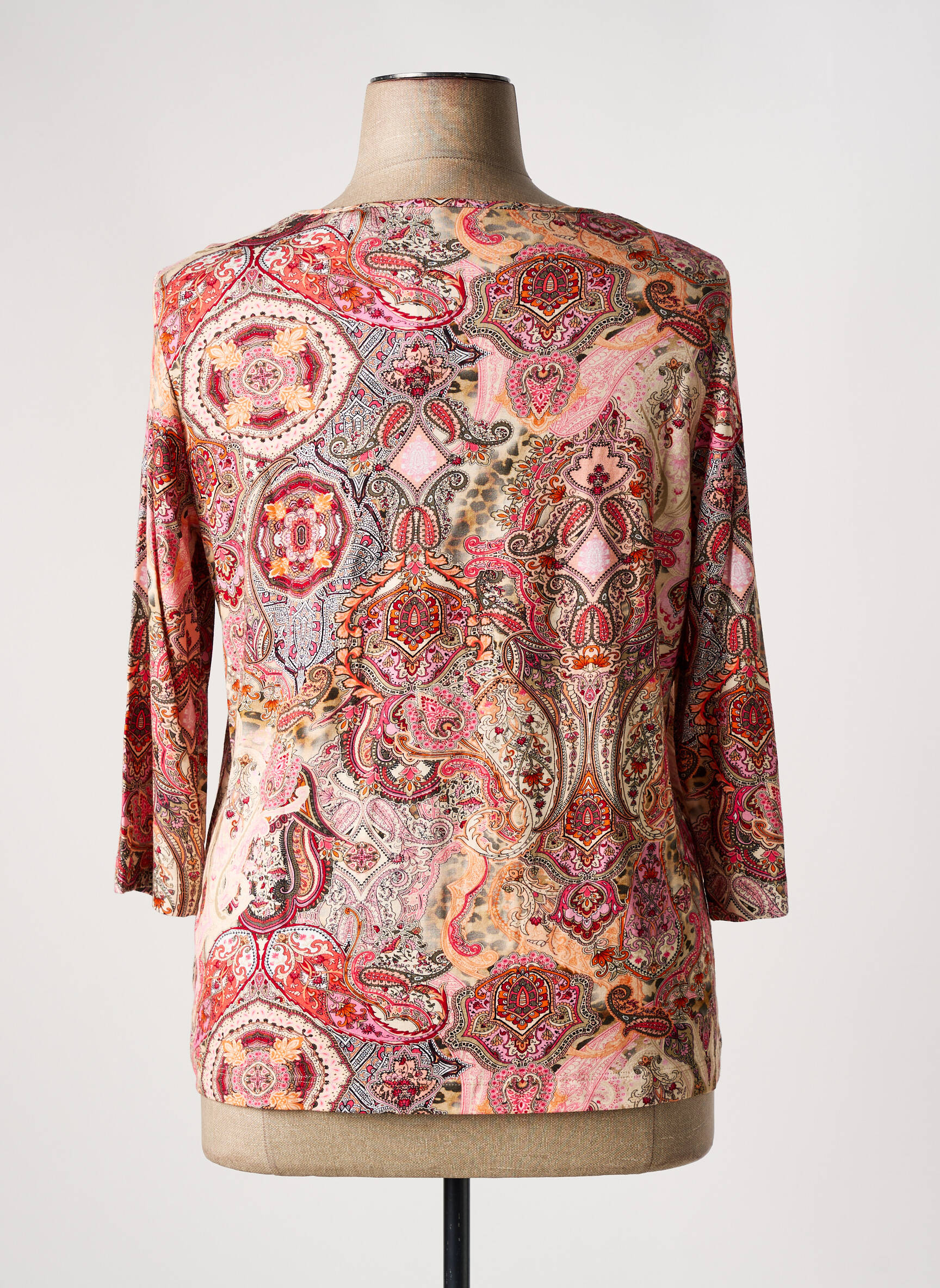 Craquez pour ce T-shirt femme de la marque SOMMERMANN qui combine élégance et petit prix, parfait pour faire des économies tout en renouvelant votre dressing. Son imprimé aux motifs jacquard aux nuances de rose, orange et beige apporte une touche bohème originale qui se marie aussi bien avec un jean qu’avec une jupe plus habillée, tandis que sa coupe droite et ses manches trois-quarts assurent confort et style à chaque instant. Profitez d’un bon plan mode avec cette pièce idéale pour égayer vos tenues sans vous ruiner !