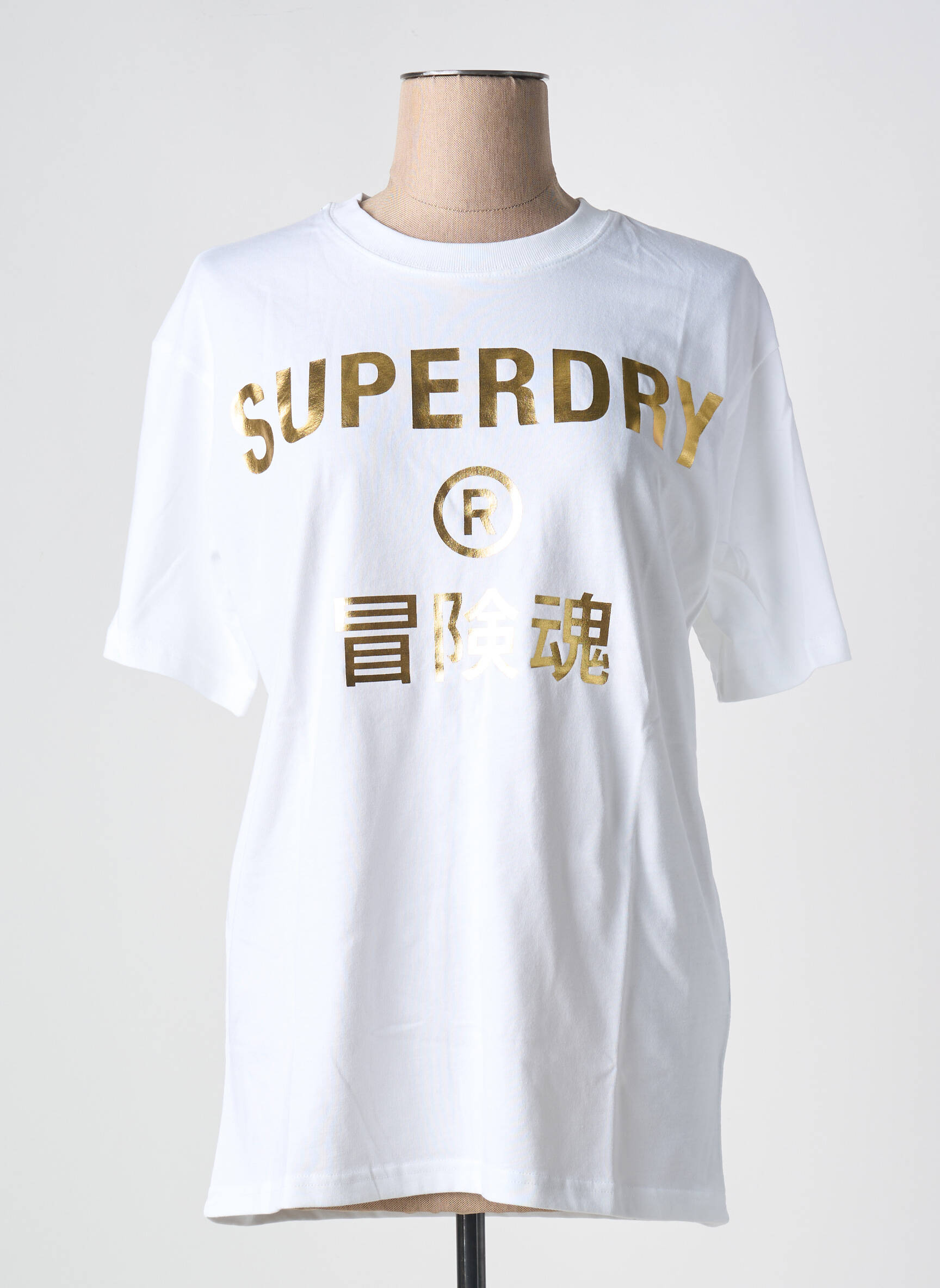 Profitez d’un super bon plan avec ce T-shirt femme Superdry à prix mini, parfait pour booster votre style sans vous ruiner. Avec sa coupe classique confortable et son lettrage doré éclatant sur fond blanc, il affiche fièrement la signature de la marque accompagné de caractères asiatiques, pour un look tendance et original à petit prix.