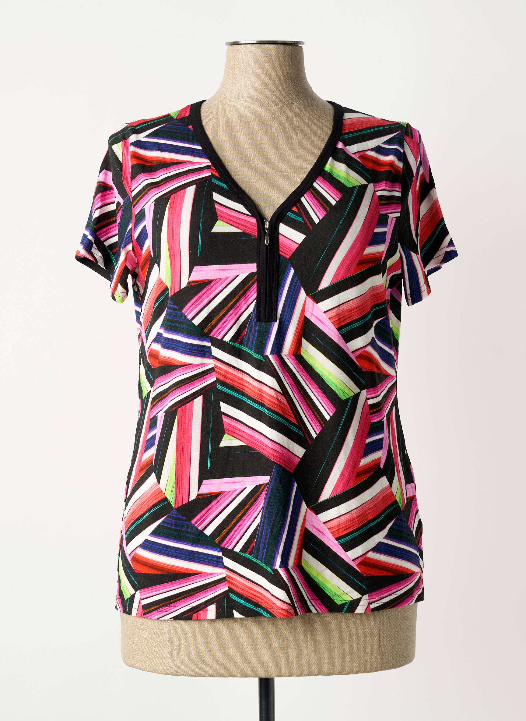 Craquez pour ce T-shirt TELMAIL pour femme à prix mini, parfait pour apporter une touche de peps à votre garde-robe sans vous ruiner. Sa coupe classique et son imprimé graphique multicolore donneront du style à toutes vos tenues, tandis que son encolure en V zippée ajoute une note moderne et féminine. Une vraie opportunité pour booster votre look au meilleur prix !