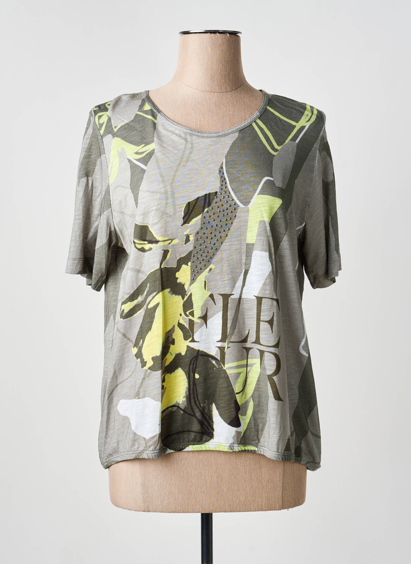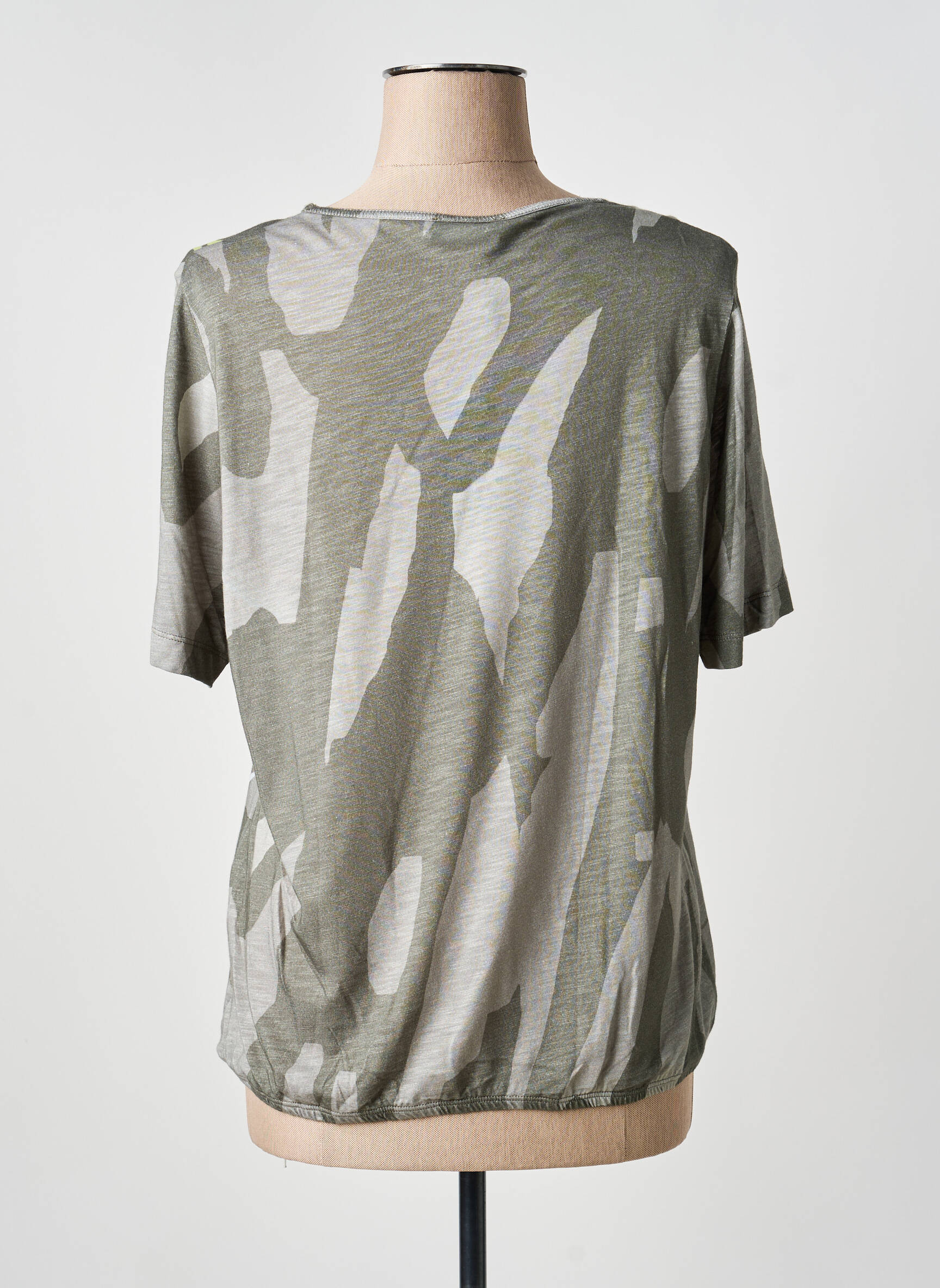 Profitez d'un bon plan mode avec ce T-shirt THOMAS RABE pour femme qui allie originalité et confort à petit prix. Son imprimé graphique aux nuances de kaki, jaune et beige apporte une touche moderne et dynamique à votre tenue, tandis que la coupe décontractée s’adapte facilement à tous vos looks quotidiens. C’est l’occasion idéale de renouveler votre dressing sans vous ruiner.