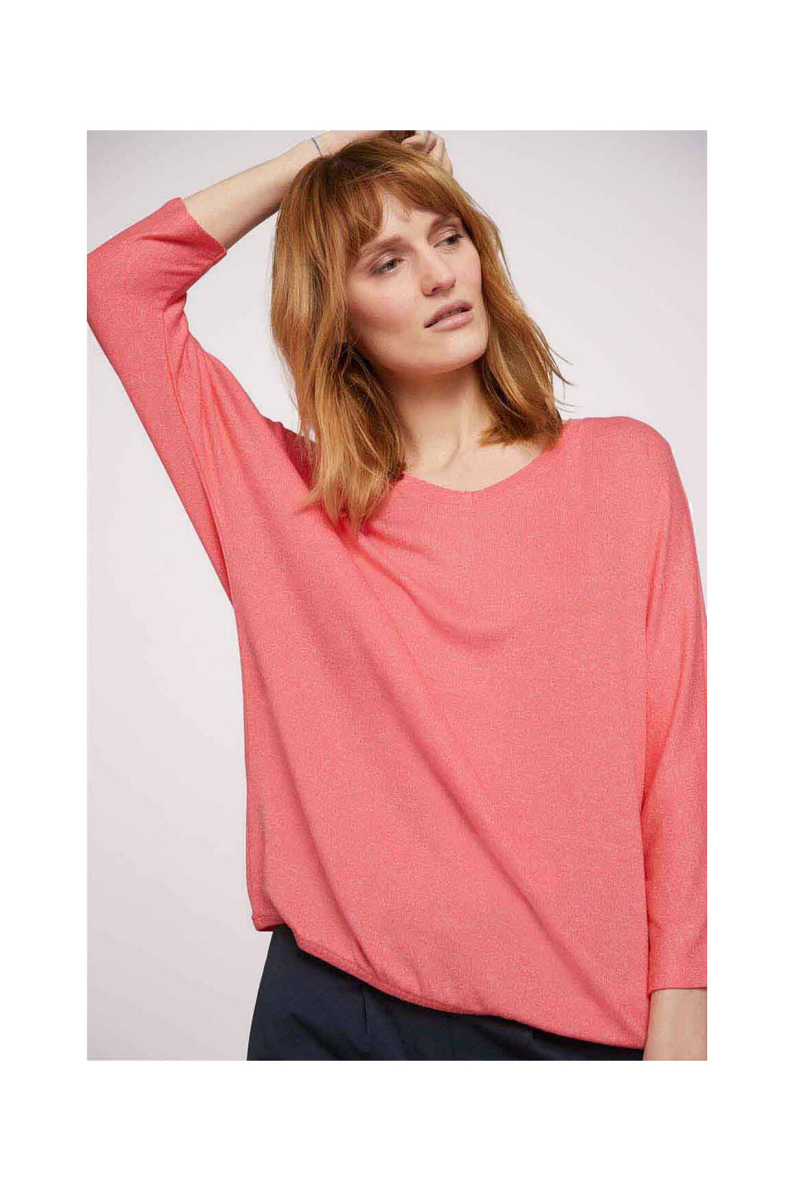Ce T-shirt se prête parfaitement à une superposition légère sous un gilet ou une veste pour compléter une tenue casual avec une touche de douceur vive. Il s’accorde idéalement avec un pantalon de coupe droite ou un jean pour un style simple mais soigné, et se marie facilement avec des baskets blanches pour une allure moderne et confortable. Pour une sortie plus habillée, ajoutez un blazer structuré et des accessoires délicats qui rehausseront son charme naturel sans l'alourdir.