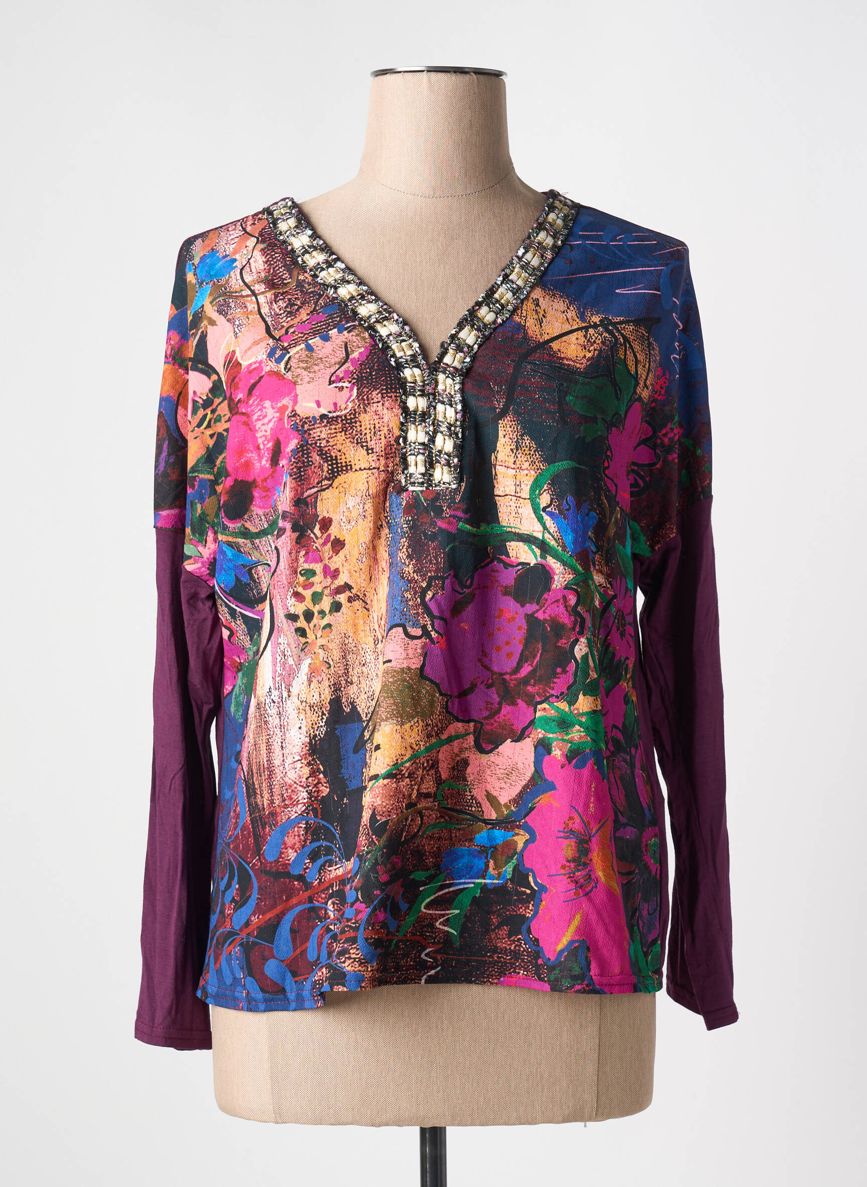 Craquez pour ce T-shirt femme VANGO, un véritable bon plan pour celles qui aiment allier style et économies sans compromis. Son imprimé coloré et artistique habille votre look d’une touche d’originalité tandis que l’encolure en V ornée de détails scintillants ajoute une note chic. Les manches longues contrastées en violet apportent du caractère et font de ce haut un indispensable original à prix mini pour toutes vos envies de renouveau dans votre dressing.
