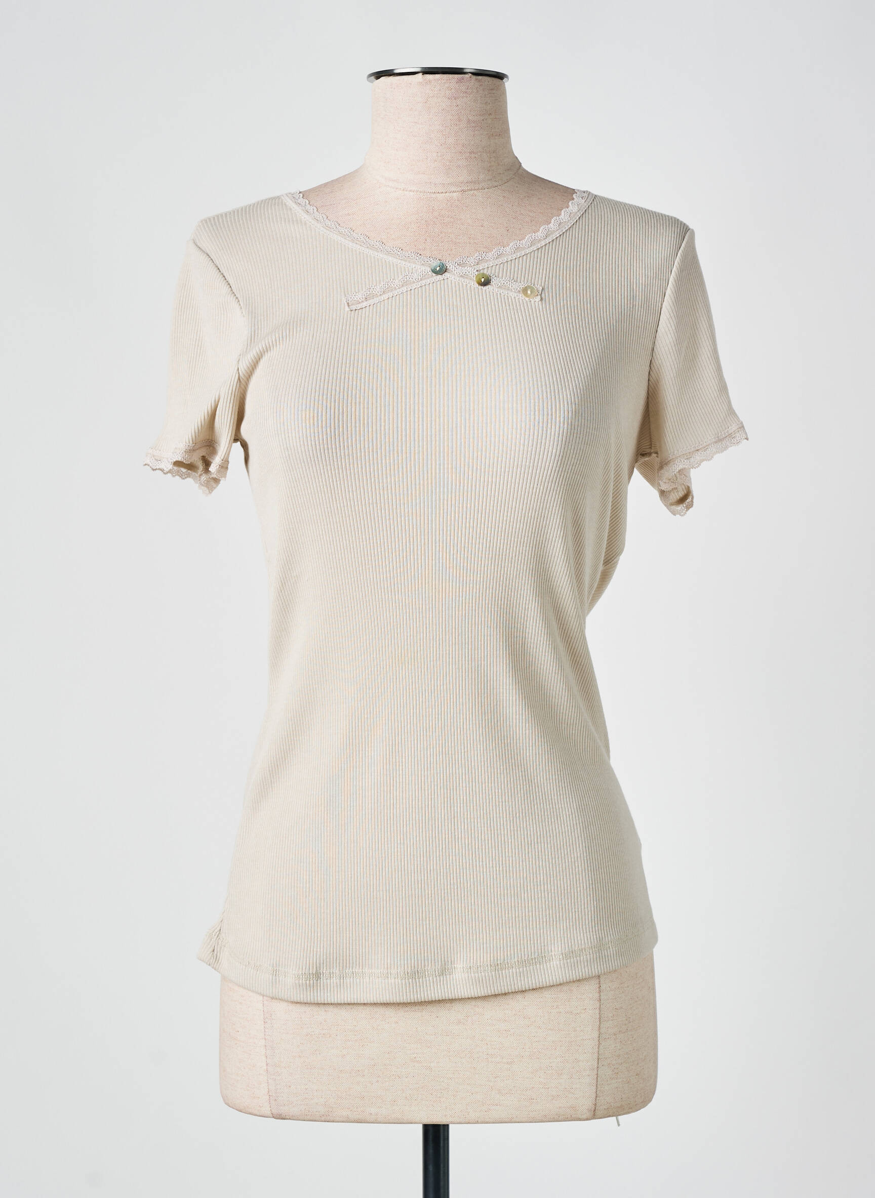 Craquez pour ce T-shirt VOODOO pour femme, une pièce tendance à prix mini qui allie douceur et féminité avec sa teinte beige lumineuse, son col rond délicatement orné de petits boutons et ses finitions dentelées sur les manches. Ce basique revisité est idéal pour renouveler votre garde-robe sans vous ruiner, parfait pour compléter vos looks du quotidien avec une touche subtile d’originalité.
