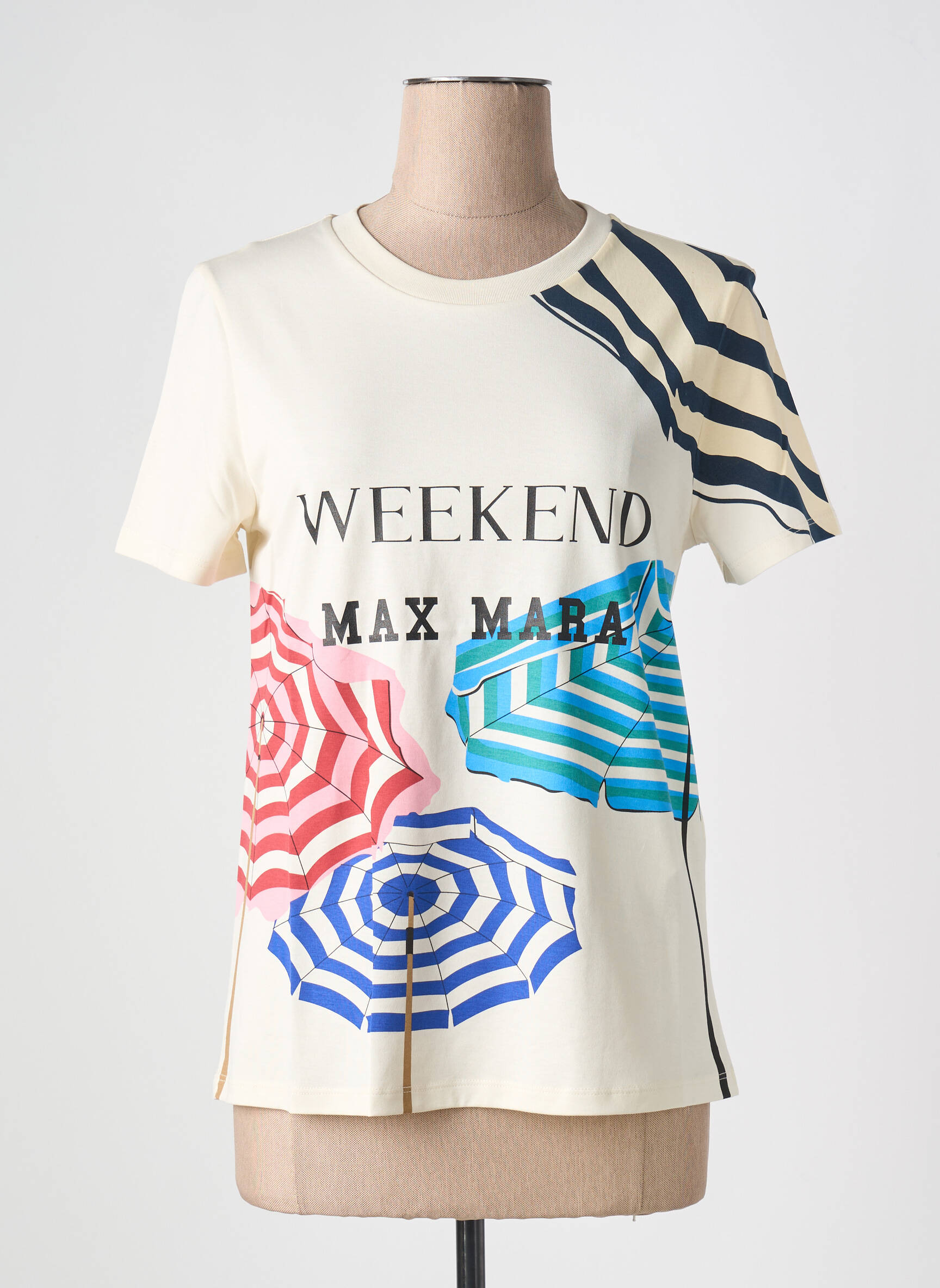 Craquez pour ce T-shirt WEEKEND MAXMARA, une pièce chic et originale accessible à petit prix, parfait pour se faire plaisir sans se ruiner. Son imprimé de parasols colorés et sa coupe décontractée insufflent une note estivale à votre look, tandis que l’inscription iconique apporte une touche de style signature très tendance. C’est l’occasion idéale de s’offrir une pièce de designer à prix tout doux pour égayer vos tenues du quotidien.