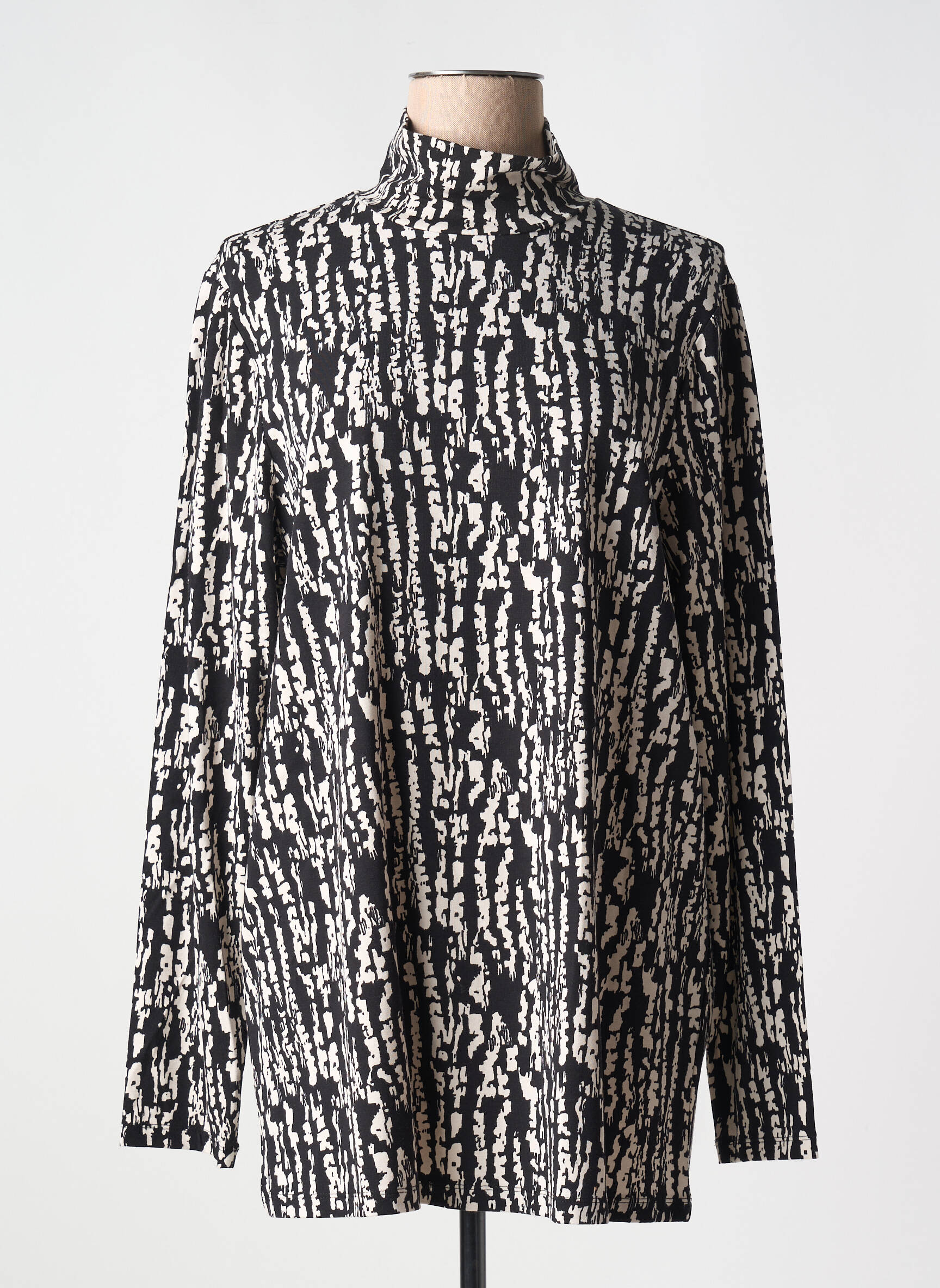 Offrez-vous un style graphique tendance à prix mini avec ce T-shirt pour femme de la marque YESTA, idéal pour celles qui aiment faire des économies sans renoncer à l’originalité. Son imprimé noir et blanc dynamique apporte une touche moderne à votre look, tandis que sa coupe droite et son col montant offrent un tombé confortable et élégant en toutes circonstances, parfait pour sublimer vos tenues du quotidien sans vous ruiner.