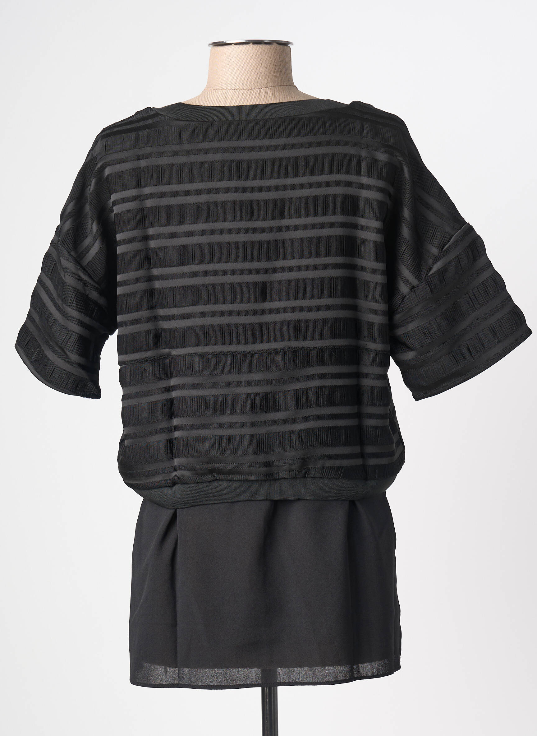 Craquez pour cette tunique manches courtes de la marque AN' GE, une pièce tendance à petit prix idéale pour apporter une touche moderne à votre dressing. Son jeu de transparence avec ses rayures et sa coupe originale superposée permettent d’affirmer un style unique tout en bénéficiant d’une offre déstockage avantageuse. Saisissez cette occasion de vous offrir un haut chic et original sans vous ruiner.