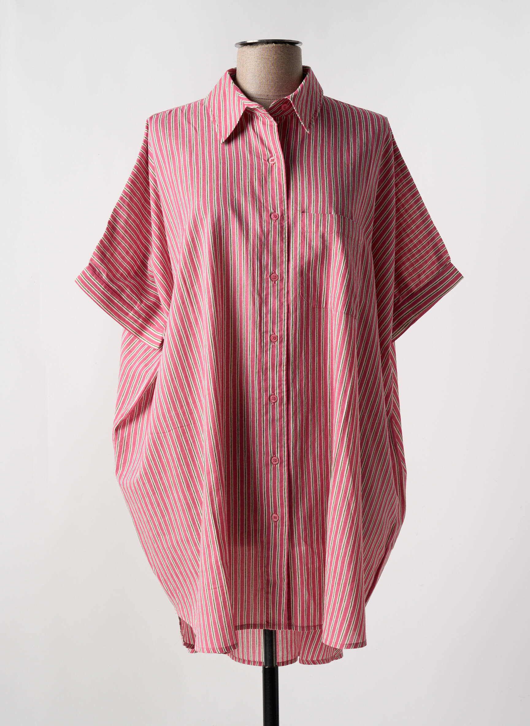 Profitez d'une belle opportunité pour renouveler votre dressing à prix malin avec cette tunique manches courtes CHARLIE JOE pour femme, au style oversize et décontracté. Sa coupe ample et fluide apporte un confort absolu tout en mettant en valeur une allure moderne et tendance, rehaussée par un jeu de rayures roses et rouges lumineuses. Dotée d'un col chemise et d'une boutonnière sur toute la longueur, cette pièce pratique conviendra parfaitement à vos envies de looks casual, estivaux ou urbains sans compromis sur l'élégance et le petit prix.