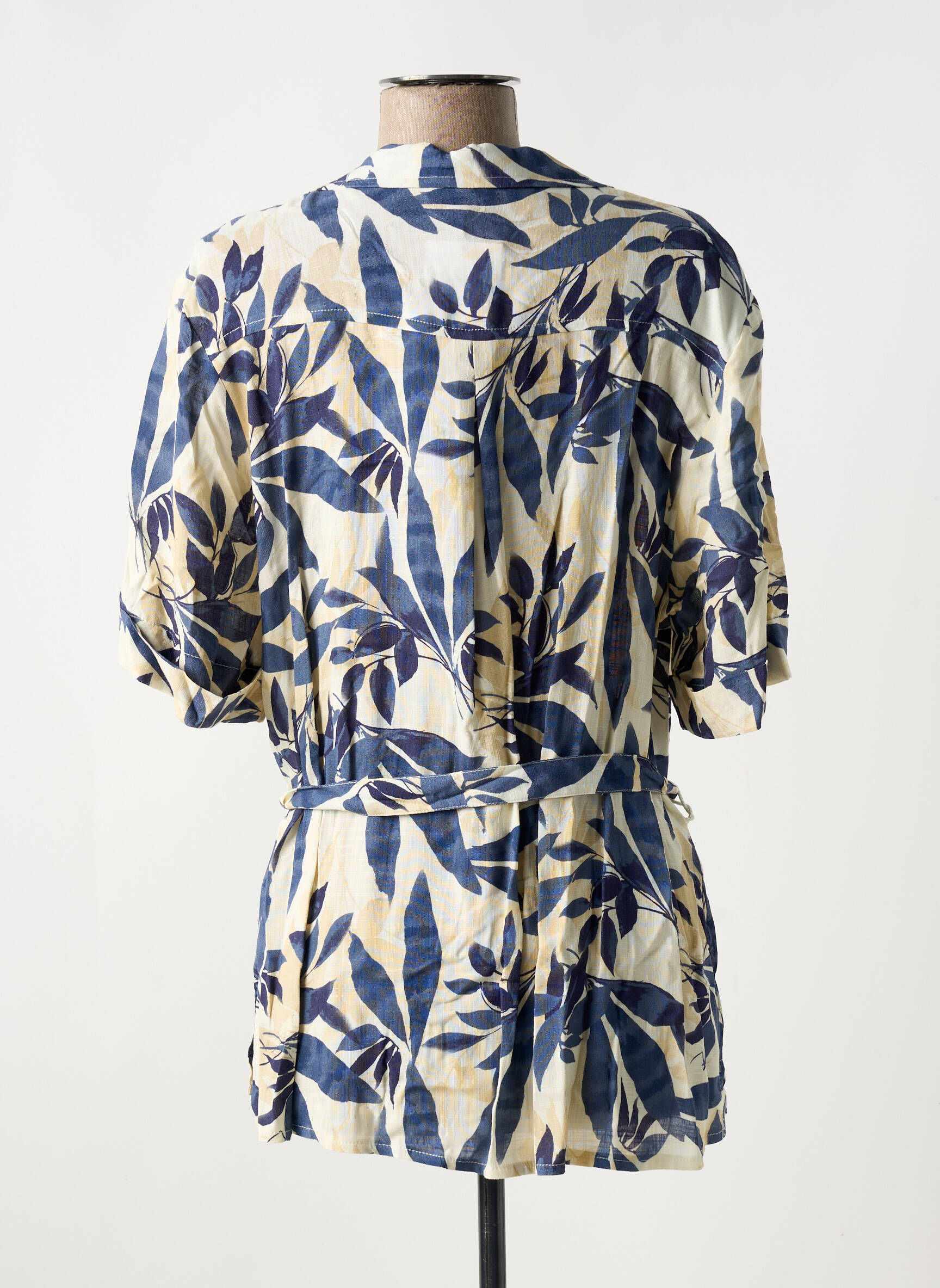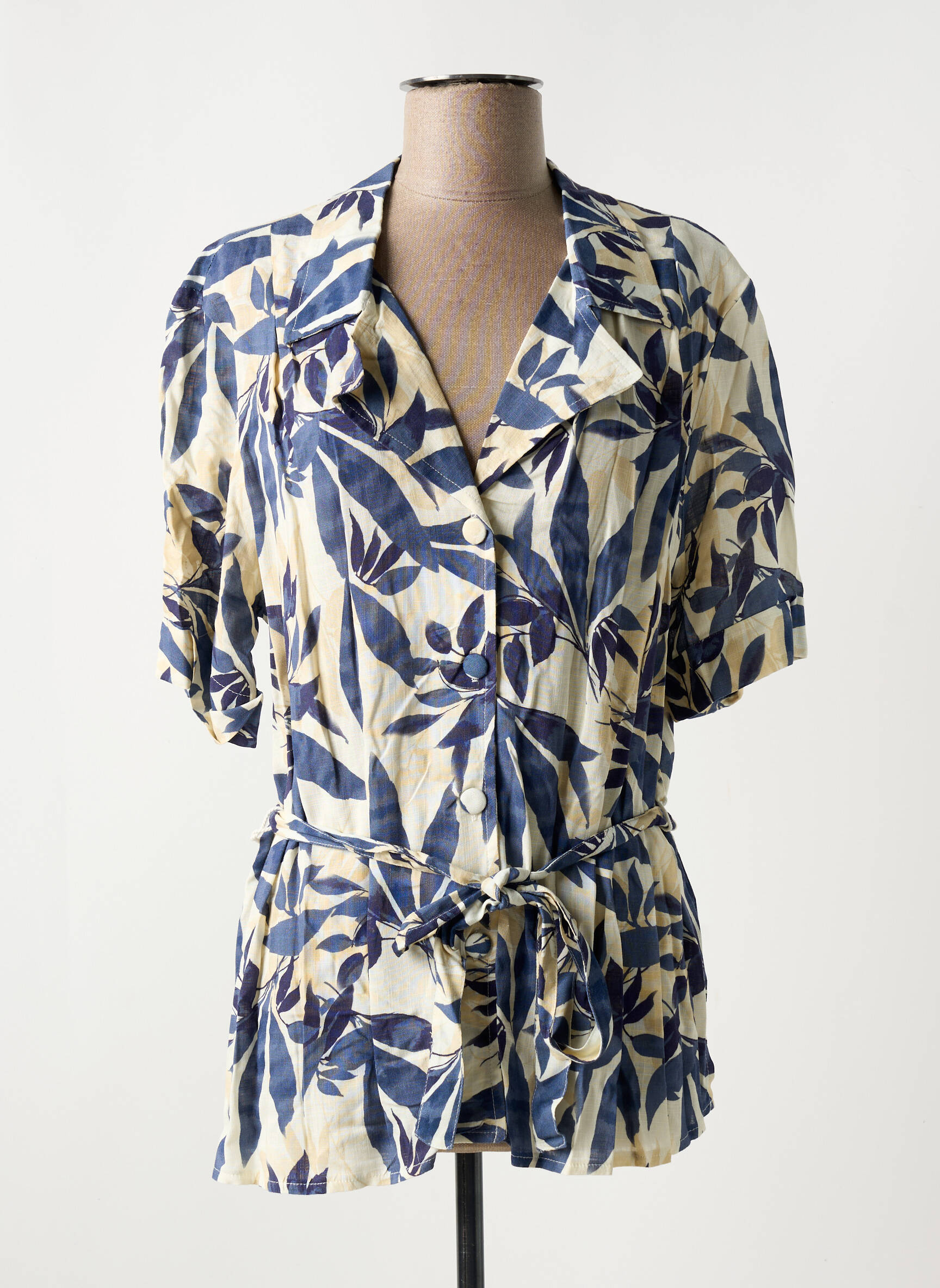 Voici une superbe tunique à manches courtes GRIFFON pour femme, idéale pour celles qui souhaitent se faire plaisir à petit prix. Avec son imprimé feuillage bleu sur fond clair, elle apporte une touche de fraîcheur à votre dressing tout en restant tendance et facile à porter au quotidien. Sa coupe légèrement ajustée, soulignée par une ceinture à la taille, sublime la silhouette avec élégance et décontraction. Un bon plan à saisir pour un look raffiné sans se ruiner !