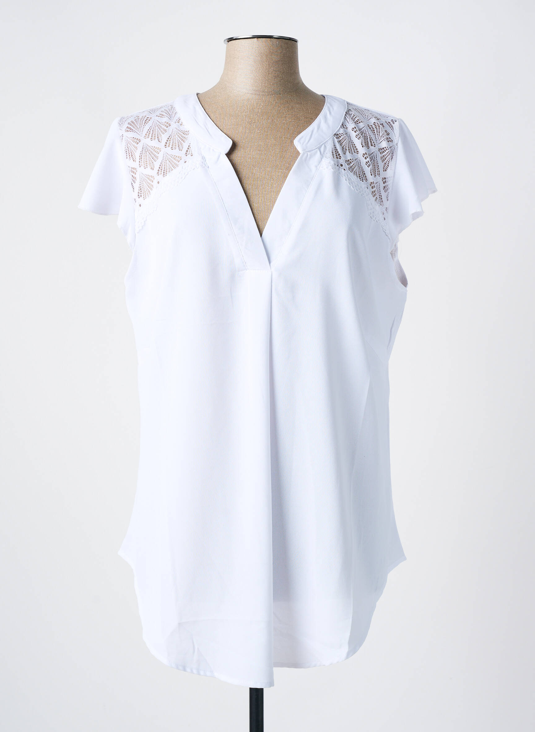 Quand la simplicité rencontre la délicatesse, cette tunique blanche NH-3 pour femme s'impose avec élégance grâce à ses manches courtes ornées de fines dentelles ajourées qui soulignent subtilement les épaules, tandis que son col en V légèrement ouvert apporte une touche de féminité moderne à cette pièce fluide et légère, parfaite pour une allure à la fois fraîche et raffinée.