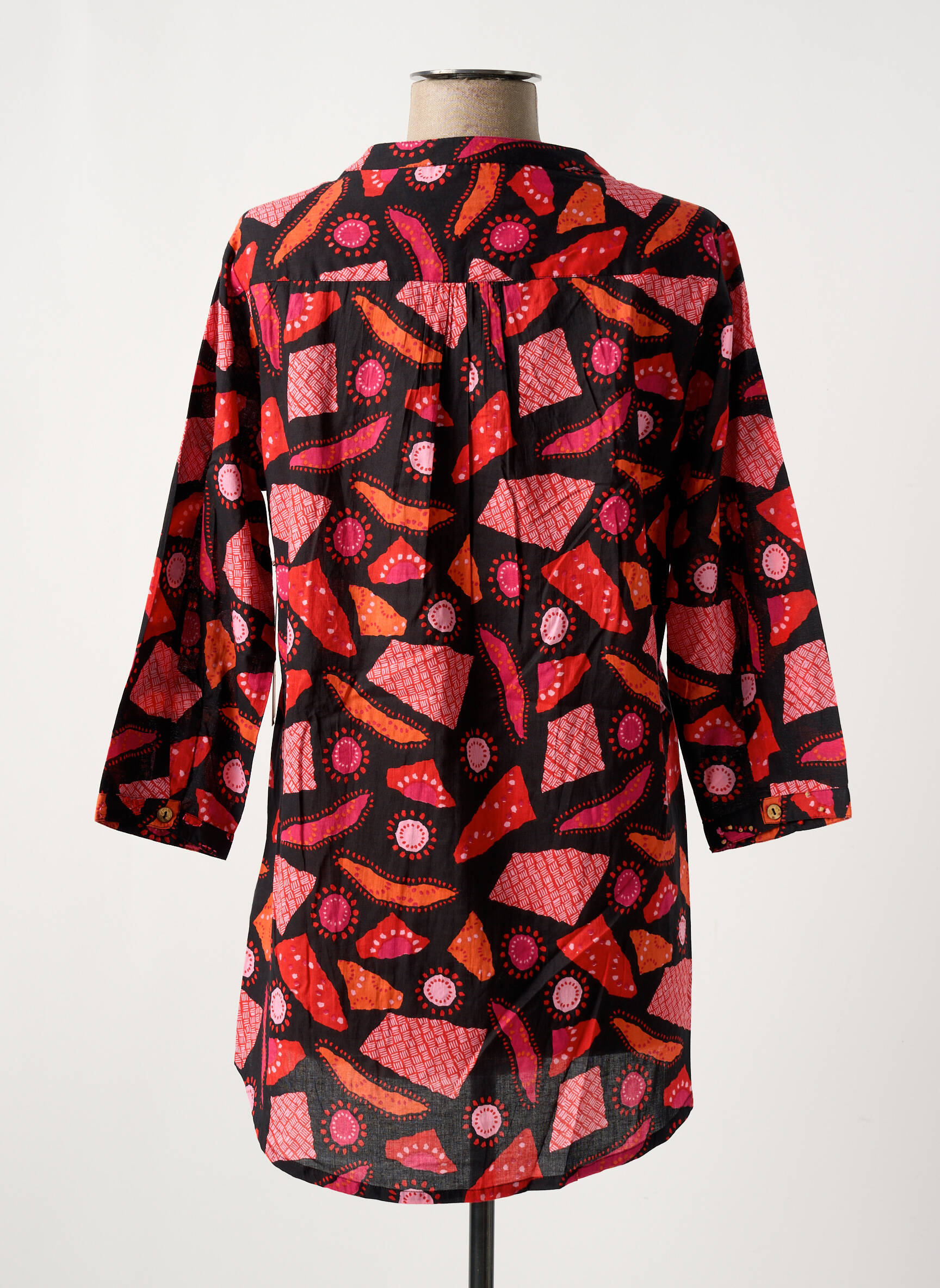 Profitez d’un bon plan incontournable avec cette tunique manches longues AGATHE & LOUISE pour femme, proposée à petit prix sur notre site. Son motif graphique mêlant des touches de rouge, fuchsia et rose sur fond noir apporte une note d’originalité et d’élégance à votre look du quotidien. La coupe droite légèrement longue et le col fendu avec patte de boutonnage offrent un tombé flatteur, parfait aussi bien pour un style décontracté que plus habillé, le tout accessible sans vous ruiner.