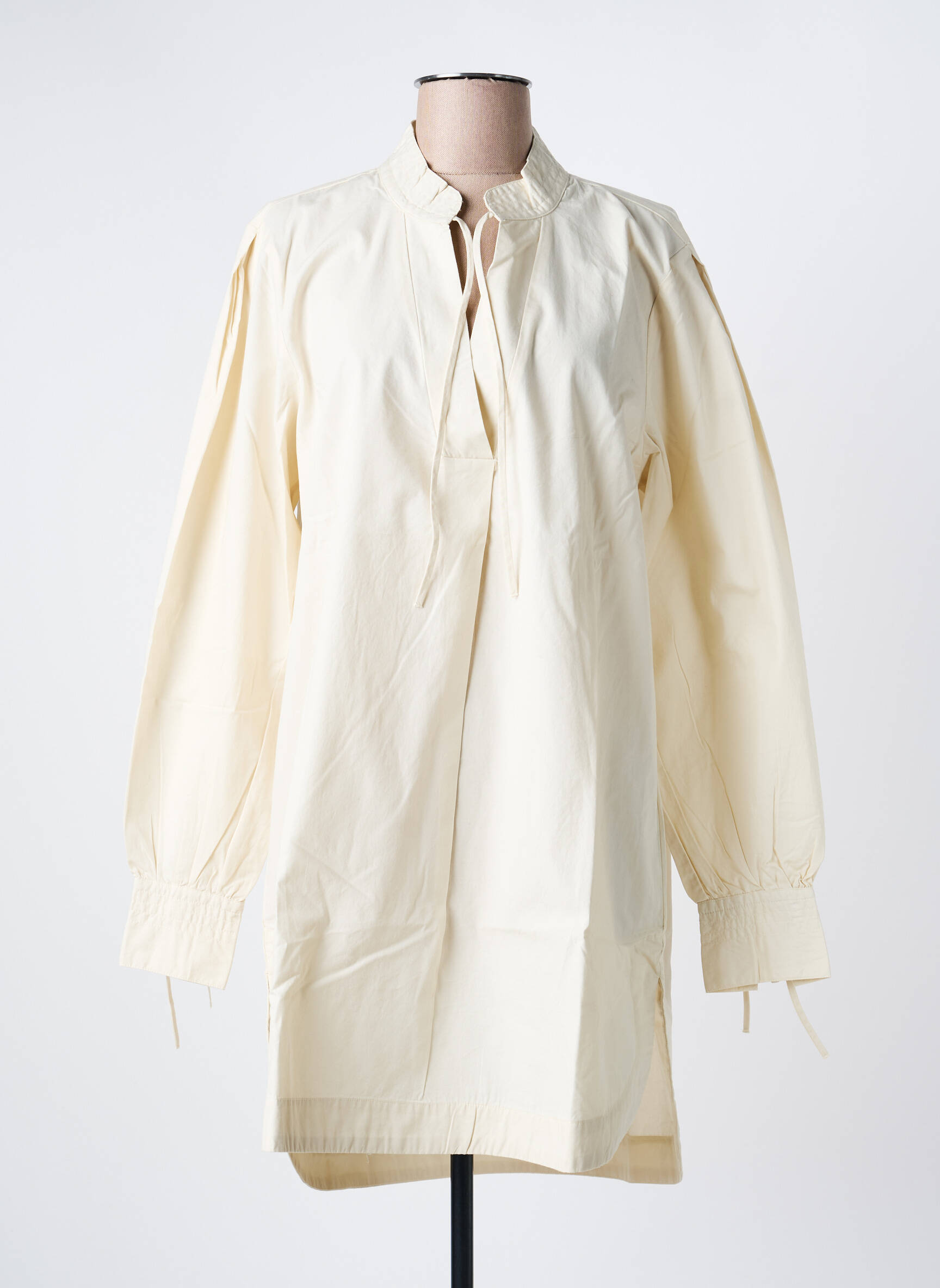 Profitez d'une occasion à ne pas manquer avec cette tunique manches longues de la marque B.YOUNG, idéale pour apporter une touche d'élégance décontractée à votre garde-robe sans vous ruiner. Son coloris écru lumineux et sa coupe fluide légèrement évasée en font une pièce confortable à porter en toute saison, tandis que les fronces sur les poignets et le col montant subtilement plissé ajoutent une note sophistiquée et féminine. Avec son encolure fendue, cette tunique se distingue par un style moderne et facile à associer, parfaite pour un look tendance à prix tout doux.
