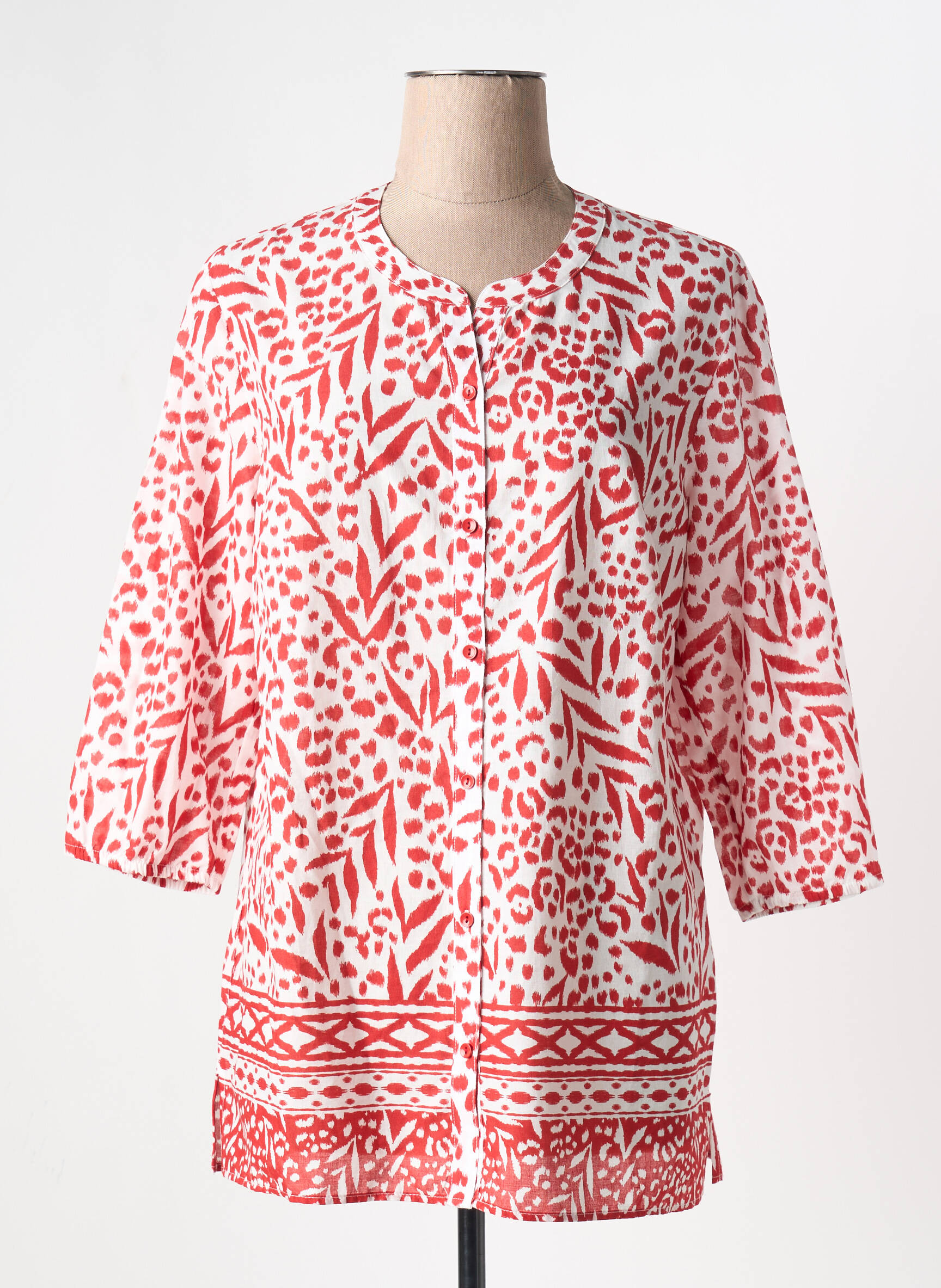 Profitez d’un maxi bon plan avec cette tunique manches longues Barbara Lebek pour femme, idéale pour renouveler votre dressing à petit prix. Son imprimé original aux accents graphiques mêle élégamment des touches rouges sur un fond blanc, tandis que les motifs ethniques et végétaux apportent une touche de fraîcheur et de modernité, le tout souligné par une coupe fluide et facile à porter pour un confort au quotidien. Voilà une pièce pleine de style qui se démarque sans se ruiner !