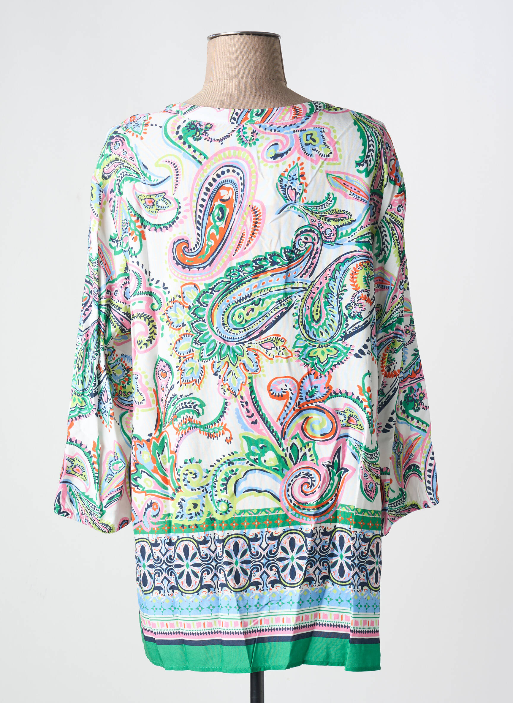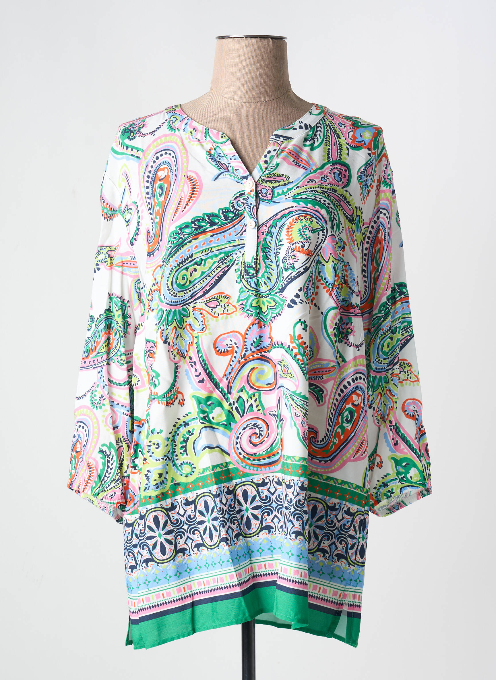 Faites-vous plaisir sans compromis avec cette tunique manches longues de la marque BARBARA LEBEK, un véritable bon plan mode pour celles qui veulent allier élégance et petit prix. Ce modèle séduit par son imprimé paisley coloré et lumineux rehaussé d’une touche de vert vif sur le bas, parfait pour dynamiser votre tenue tout en douceur. Sa coupe fluide assure un confort optimal au quotidien, tandis que la finition boutonnée à l’encolure apporte une note moderne facile à porter en toutes occasions. Profitez d’une pièce tendance à prix déstocké pour renouveler votre dressing sans vous ruiner.