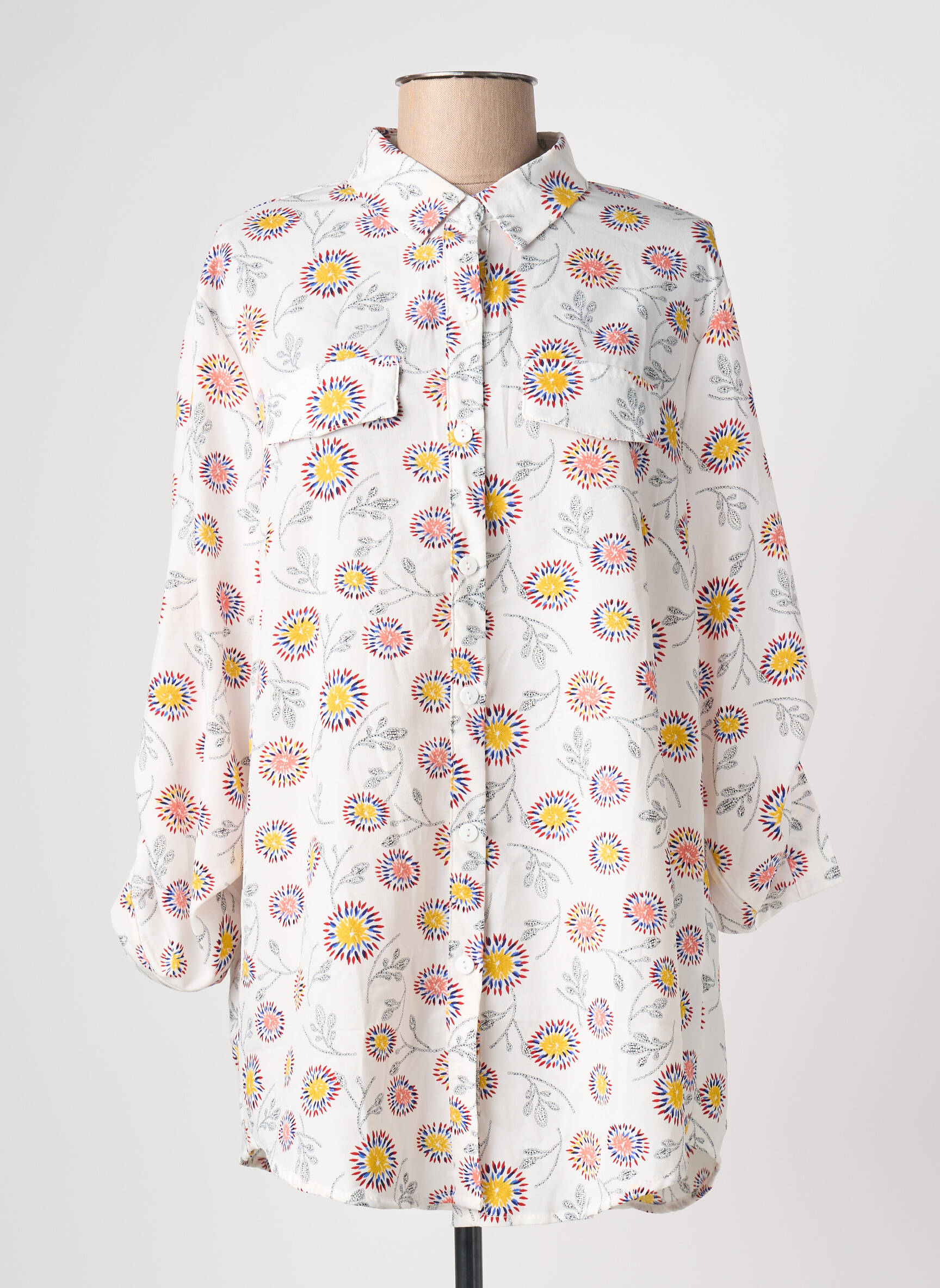 Profitez d’un bon plan tendance avec cette tunique manches longues CHRISTY, idéale pour apporter une touche de fraîcheur et de couleur à votre garde-robe sans vous ruiner. Ce modèle séduit par sa coupe fluide et confortable, son col chemise classique et ses motifs floraux éclatants aux nuances vives, parfaits pour dynamiser un look au quotidien tout en faisant une belle économie.