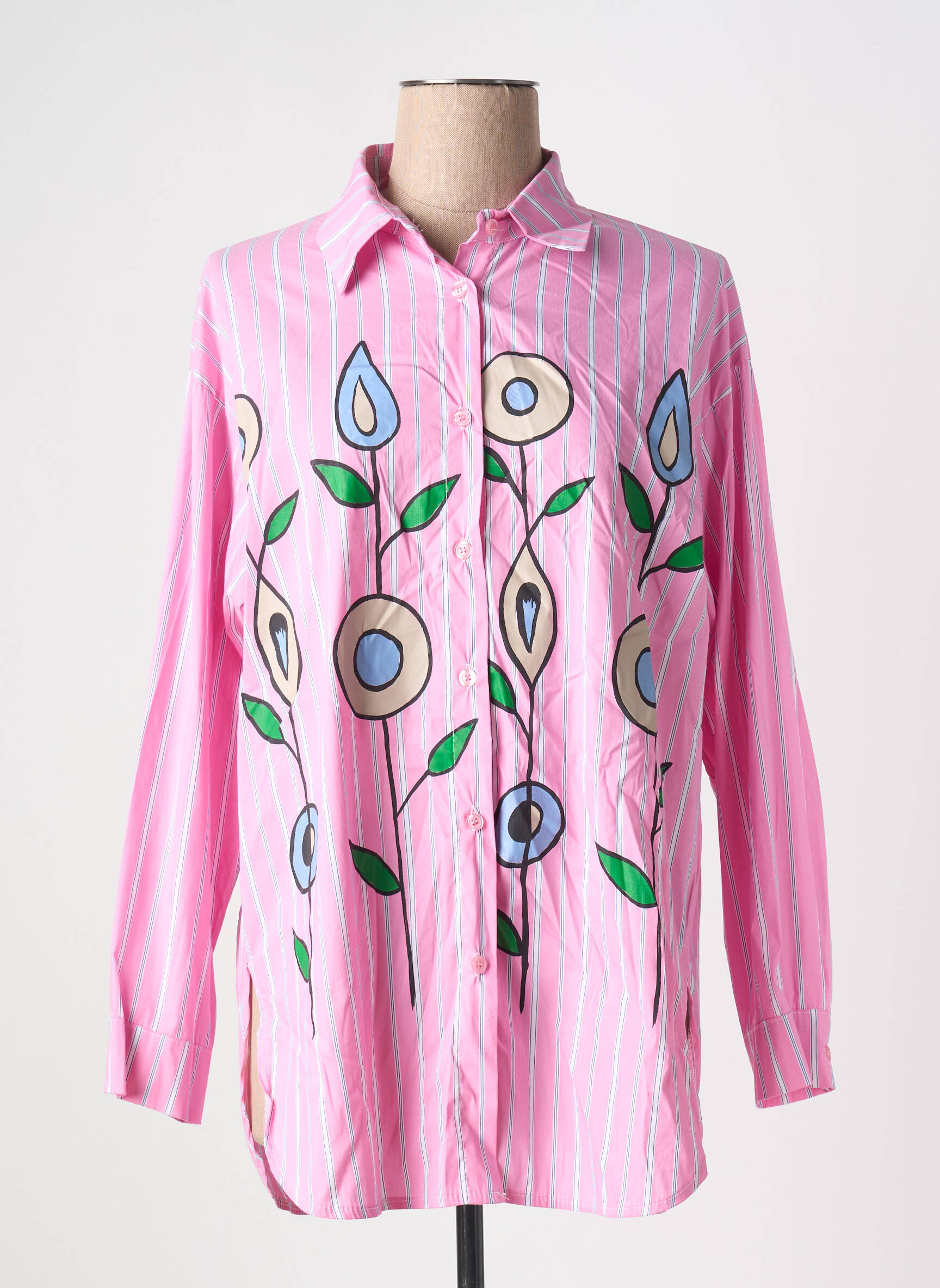 Profitez d’un style unique à prix mini avec cette tunique manches longues pour femme signée COUTUREVE, idéale pour celles qui aiment allier originalité et économies. Avec son fond rose à fines rayures blanches et ses grands motifs fleuris colorés, elle apporte une touche de fraîcheur et de fantaisie à votre garde-robe, tout en restant accessible pour les petits budgets.