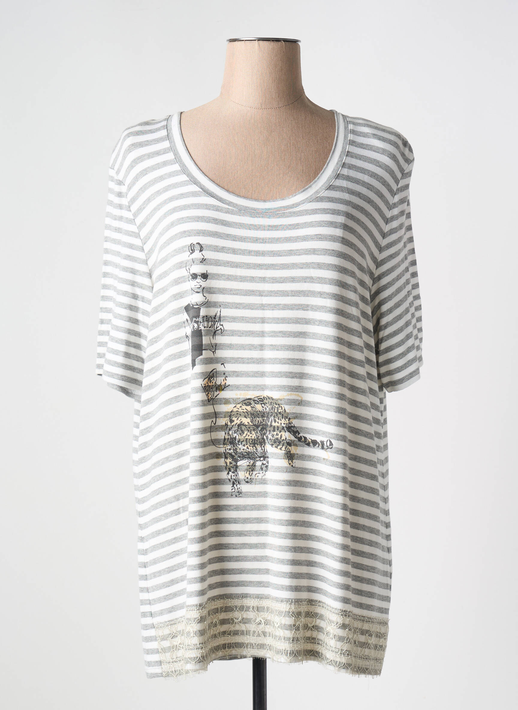 Profitez d’un véritable bon plan en choisissant cette tunique manches longues EUGEN KLEIN pour femme, une pièce unique à petit prix qui allie élégance et confort au quotidien. Son motif rayé gris perle rehaussé par une illustration discrète et originale crée un look moderne, parfait pour dynamiser votre garde-robe sans vous ruiner. Avec sa coupe flatteuse et son col rond, elle s’adapte à toutes vos envies pour un style tendance et accessible.