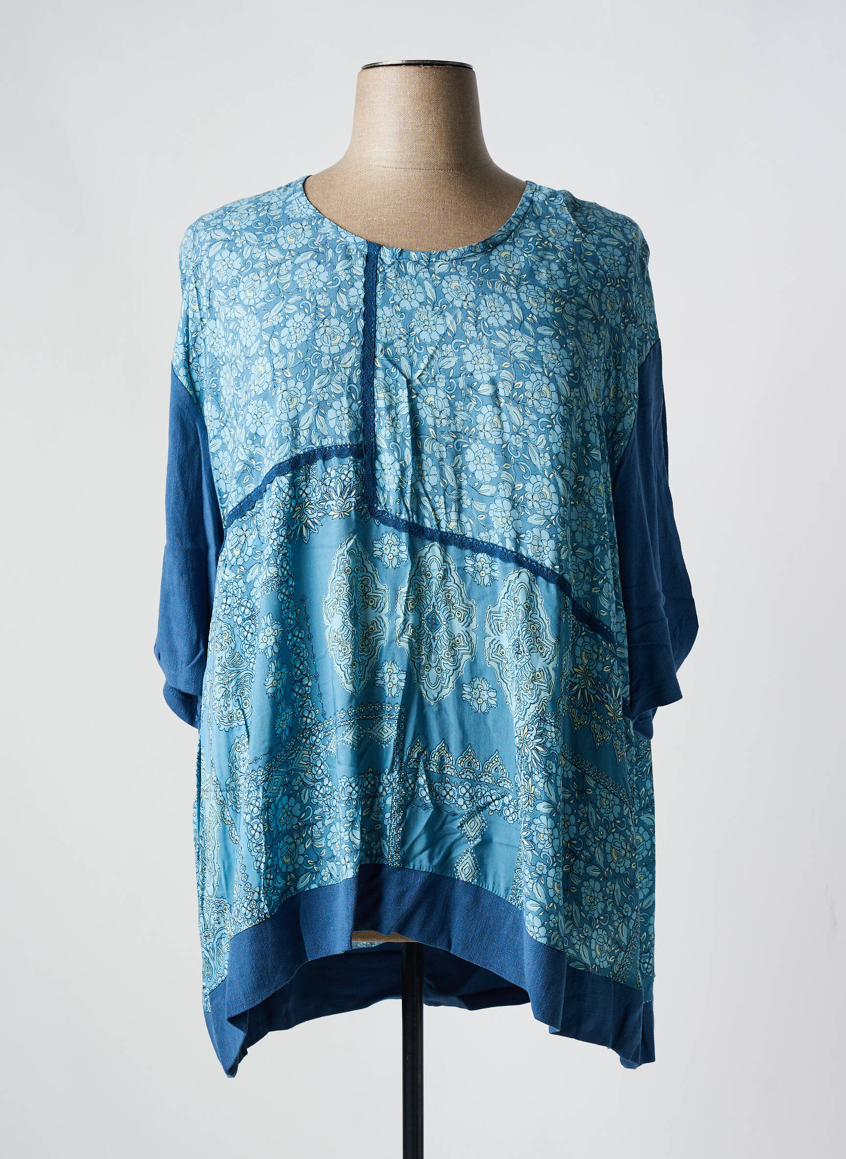 Craquez pour cette tunique manches longues signée FRANCK ANNA, véritable bon plan pour un look tendance à prix mini. Son tissu léger met en valeur un magnifique imprimé floral dans des nuances de bleu, rehaussé par des empiècements unis pour une allure originale et féminine. Idéale pour illuminer votre quotidien sans vous ruiner, elle apporte une touche d’élégance décontractée, parfaite à mixer avec un jean ou un pantalon fluide.