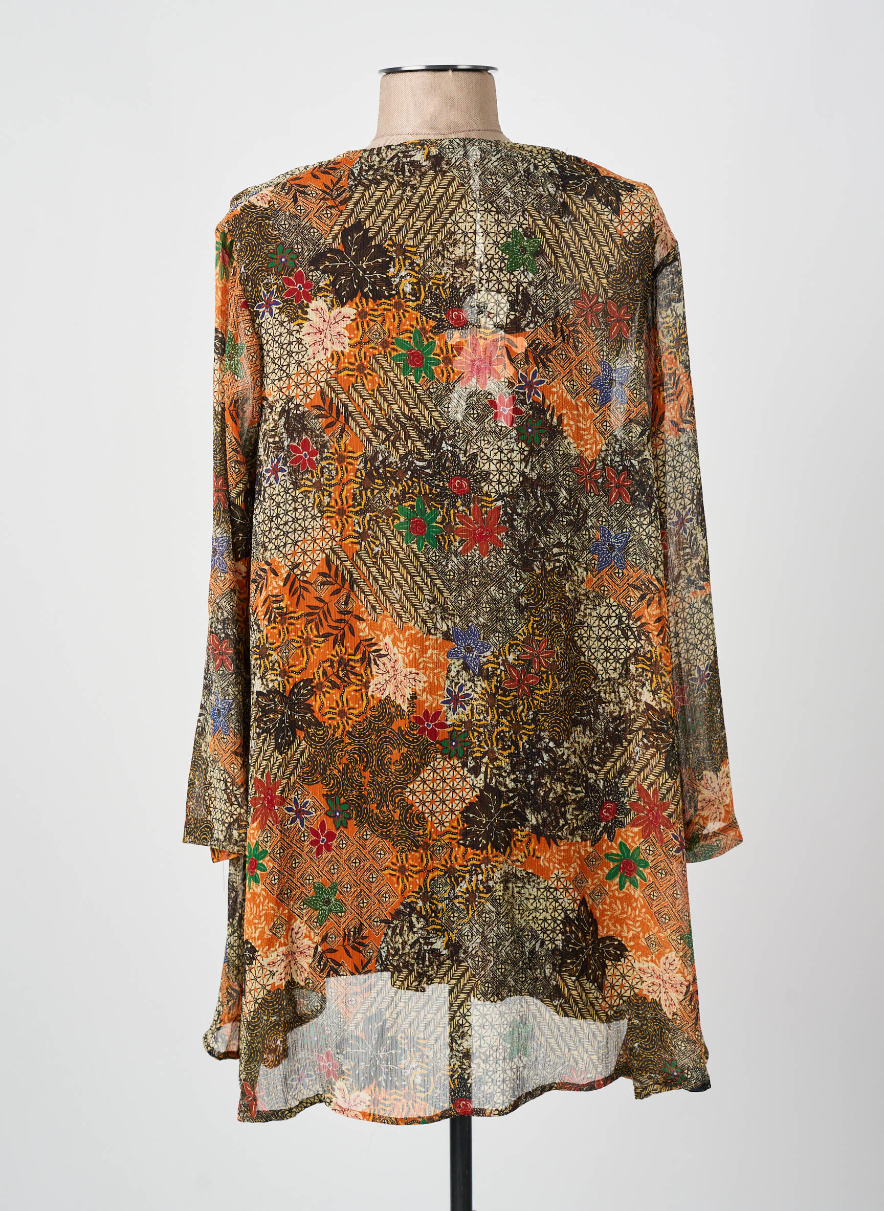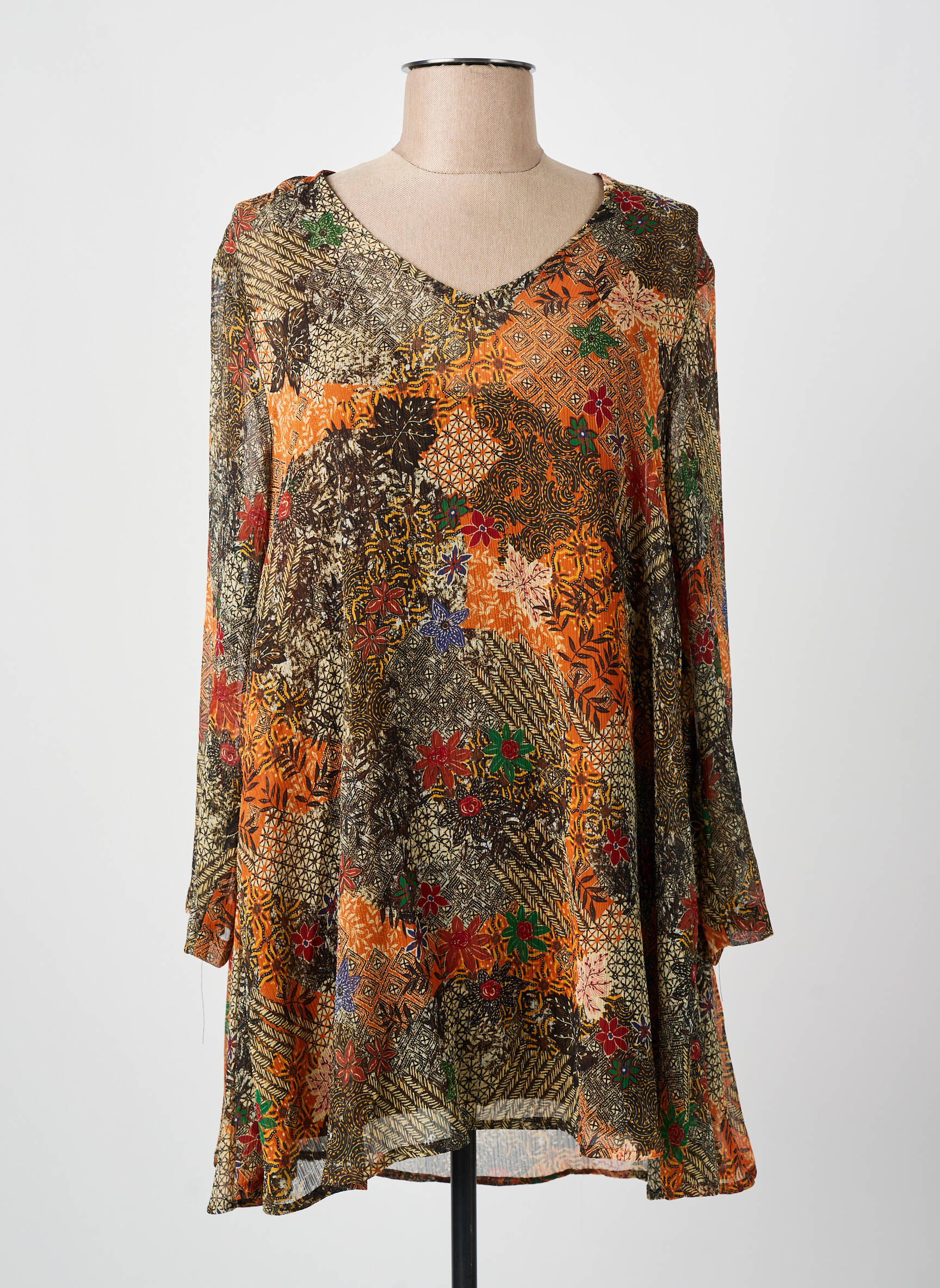 Optez pour une touche d’originalité à petit prix avec cette tunique manches longues de la marque FRANCK ANNA, parfaite pour donner du pep’s à votre garde-robe sans vous ruiner. Son tissu aérien et fluide met en valeur une coupe légèrement évasée, tandis que son motif multicolore mêle harmonieusement des teintes automnales et des détails floraux pour un effet à la fois bohème et raffiné. Ce modèle séduira par son confort et son look unique, idéal pour celles qui cherchent un bon plan mode tendance et économique.