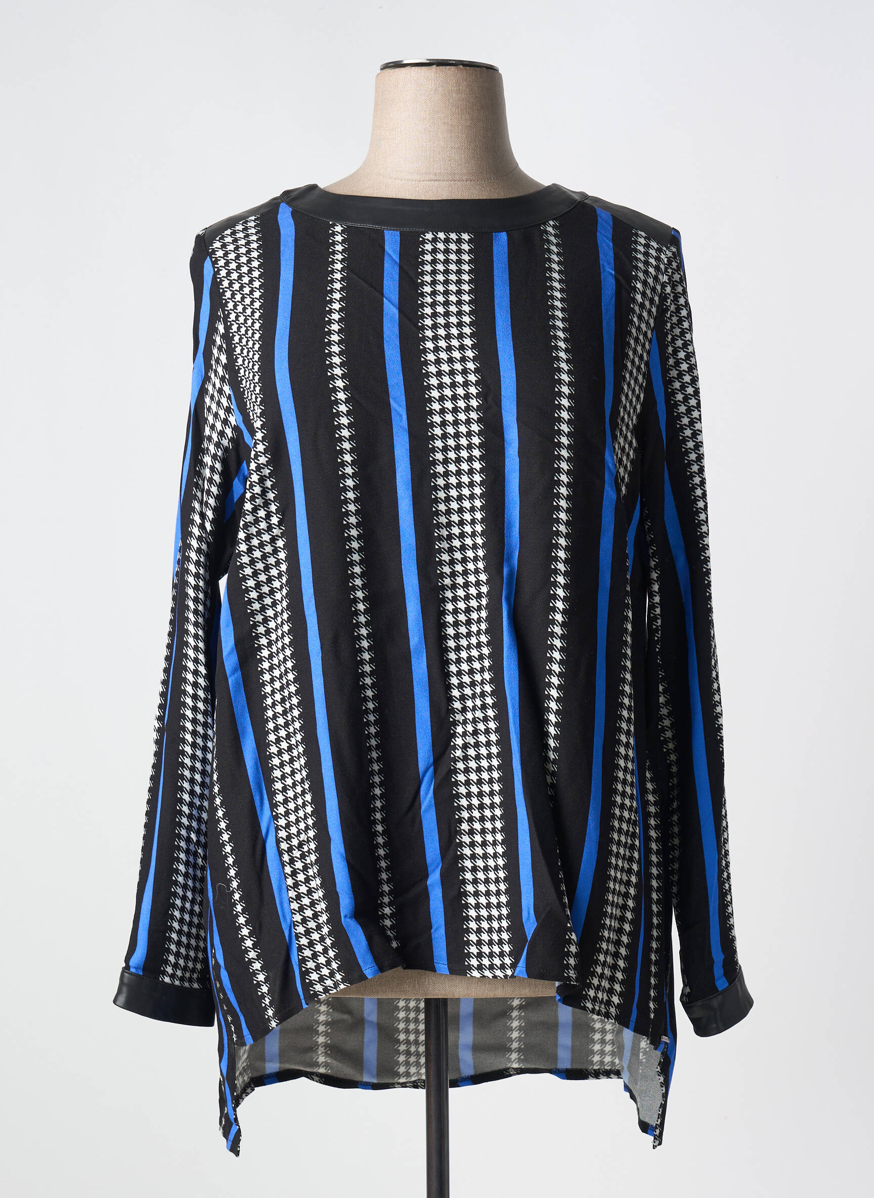 Profitez d’un bon plan mode avec cette tunique manches longues FRED SABATIER pour femme qui allie style moderne et petit prix. Son motif à rayures graphiques dans les tons noir, bleu et blanc apporte une touche dynamique à votre tenue, tandis que sa coupe fluide et légèrement plus longue à l’arrière assure confort et élégance au quotidien. Voilà une pièce parfaite pour renouveler votre dressing sans vous ruiner !