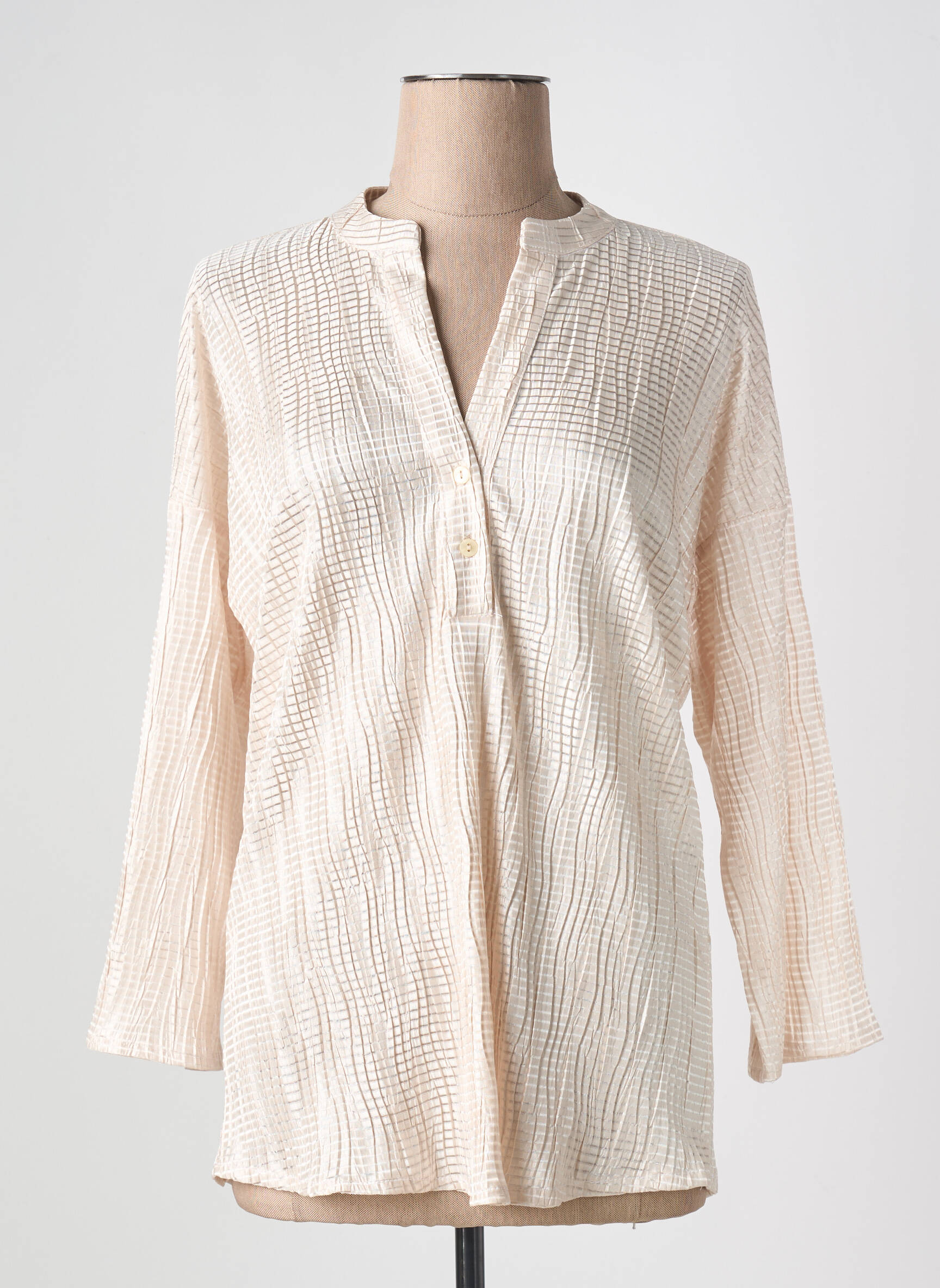 Profitez d’une superbe affaire avec cette tunique à manches longues JANIS & JOHN pour femme, idéale pour celles qui cherchent à renouveler leur garde-robe sans se ruiner. Sa coupe fluide et son tissu légèrement gaufré apportent un style à la fois décontracté et élégant, parfait pour s’adapter à toutes les occasions du quotidien. L’encolure en V avec une patte boutonnée discrète donne une touche moderne et féminine, tandis que la teinte claire se marie facilement avec vos tenues favorites. Voilà un vrai bon plan mode à prix tout doux !