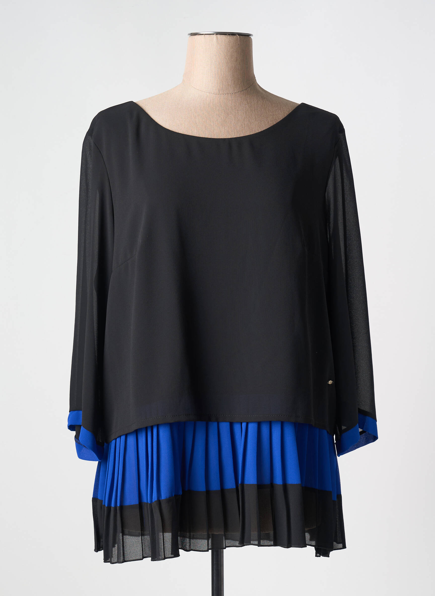 Craquez pour cette tunique manches longues signée JAZZ, un véritable bon plan pour donner du style à votre garde-robe sans vous ruiner. Son jeu de superpositions apporte de la légèreté avec une touche graphique, tandis que l’association du noir profond et du bleu vif crée un contraste chic et moderne. Les finitions plissées sur le bas de la pièce ajoutent une pointe d’originalité et de féminité, idéale pour celles qui aiment se démarquer à petit prix tout en restant élégantes.