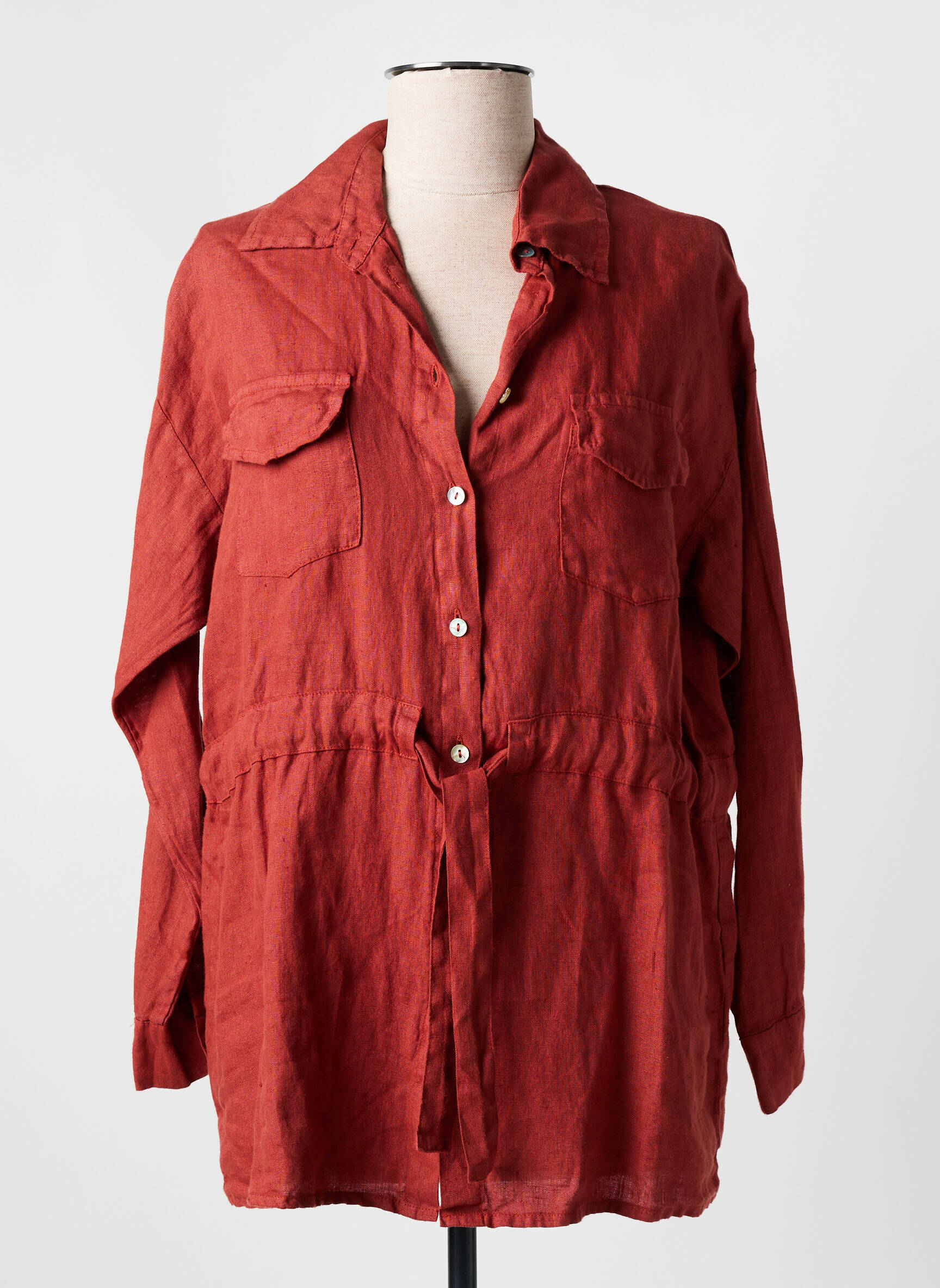 Plongez dans une atmosphère chaleureuse et contemporaine avec cette tunique à manches longues signée LA FEE MARABOUTEE. Son teinte terre cuite évoque la chaleur du soleil couchant, tandis que la coupe fluide et les poches poitrine ajoutent une touche de décontraction chic. La fermeture par boutons, subtilement mise en valeur, confère une allure raffinée et pratique. Ce modèle est parfait pour celles qui souhaitent allier confort et élégance, que ce soit au quotidien ou pour des occasions spéciales. Un incontournable à porter avec insouciance.