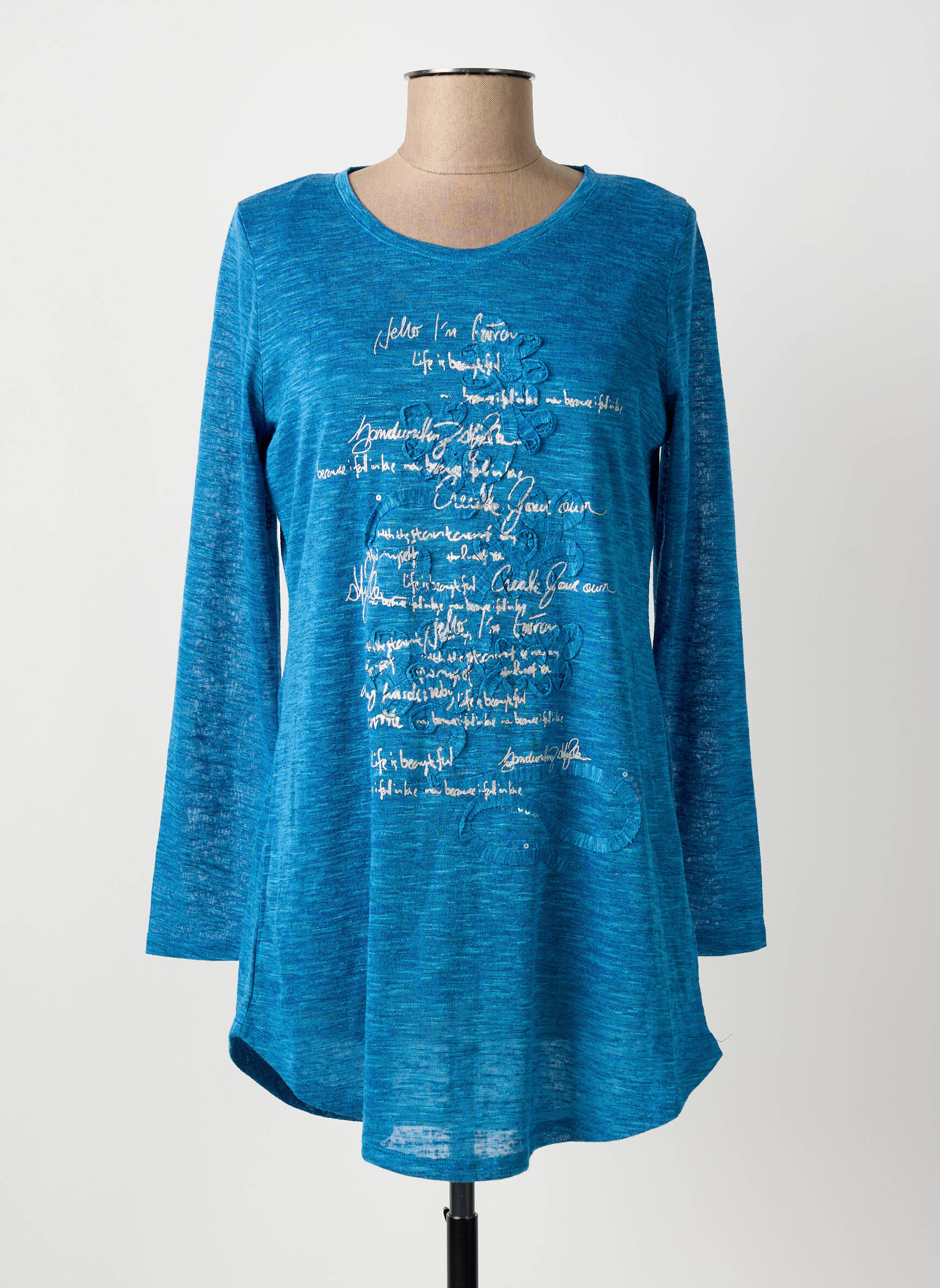 Profitez d’un bon plan mode avec cette tunique manches longues pour femme de la marque MARBLE, proposée à prix mini. Son bleu dynamique apporte une touche de fraîcheur à votre tenue, tandis que le motif d’écriture argentée sur le devant lui donne un style moderne et original. Parfaite pour celles qui recherchent un vêtement confortable et tendance sans se ruiner, cette tunique élégante offre une coupe fluide et facile à porter au quotidien. Ne ratez pas cette occasion de renouveler votre dressing à petit prix !
