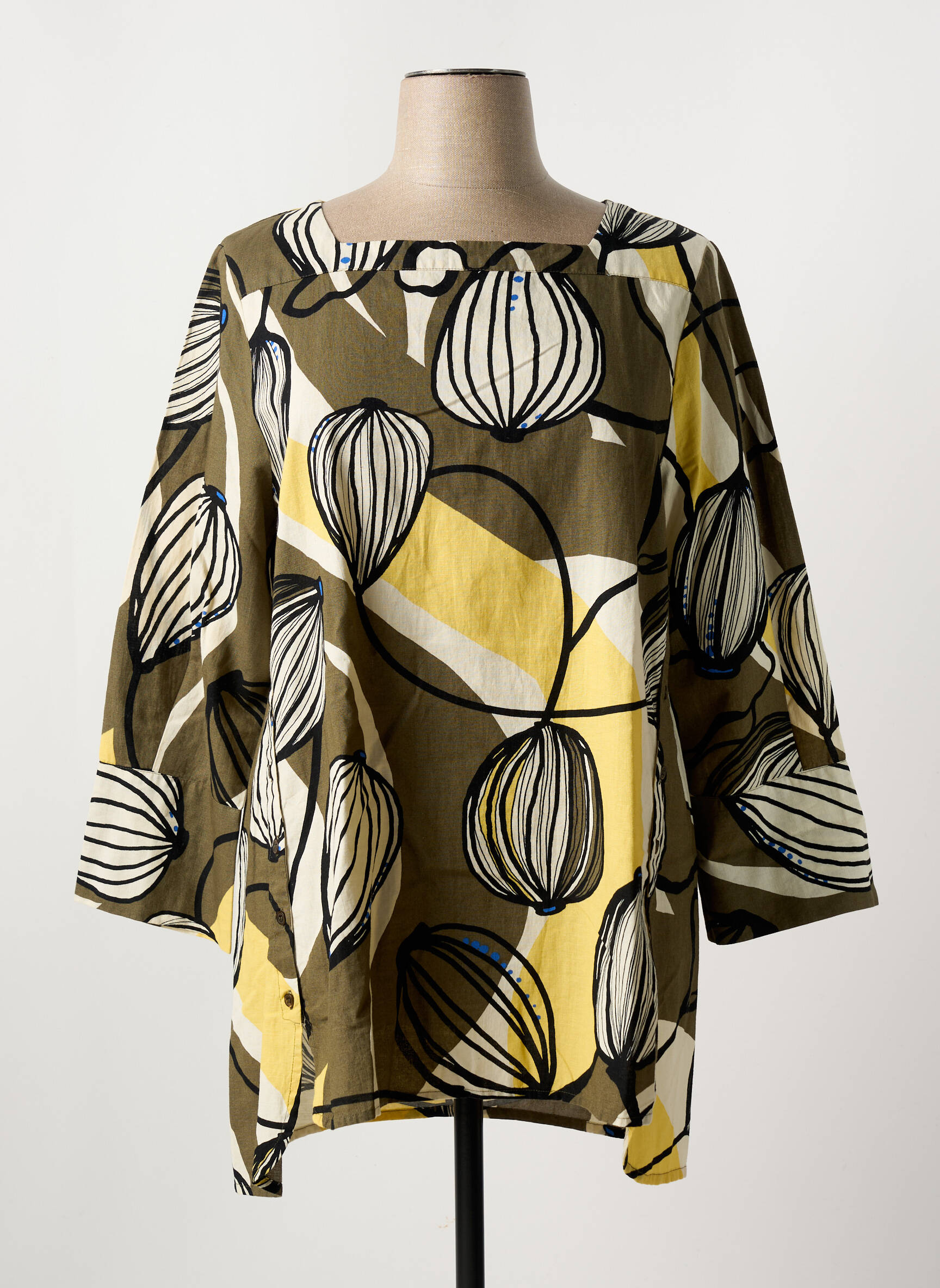 Profitez d’un bon plan mode avec cette tunique manches longues pour femme de la marque MASAI, une pièce originale à prix tout doux qui vous permet de vous offrir le style sans vous ruiner. Son imprimé graphique dans des tons de kaki, jaune et blanc apporte une touche artistique à votre look, tandis que sa coupe ample et confortable vous garantit aisance et élégance au quotidien. C’est l’occasion idéale de craquer pour une tunique tendance et facile à porter, parfaite pour dynamiser votre garde-robe à petit prix.