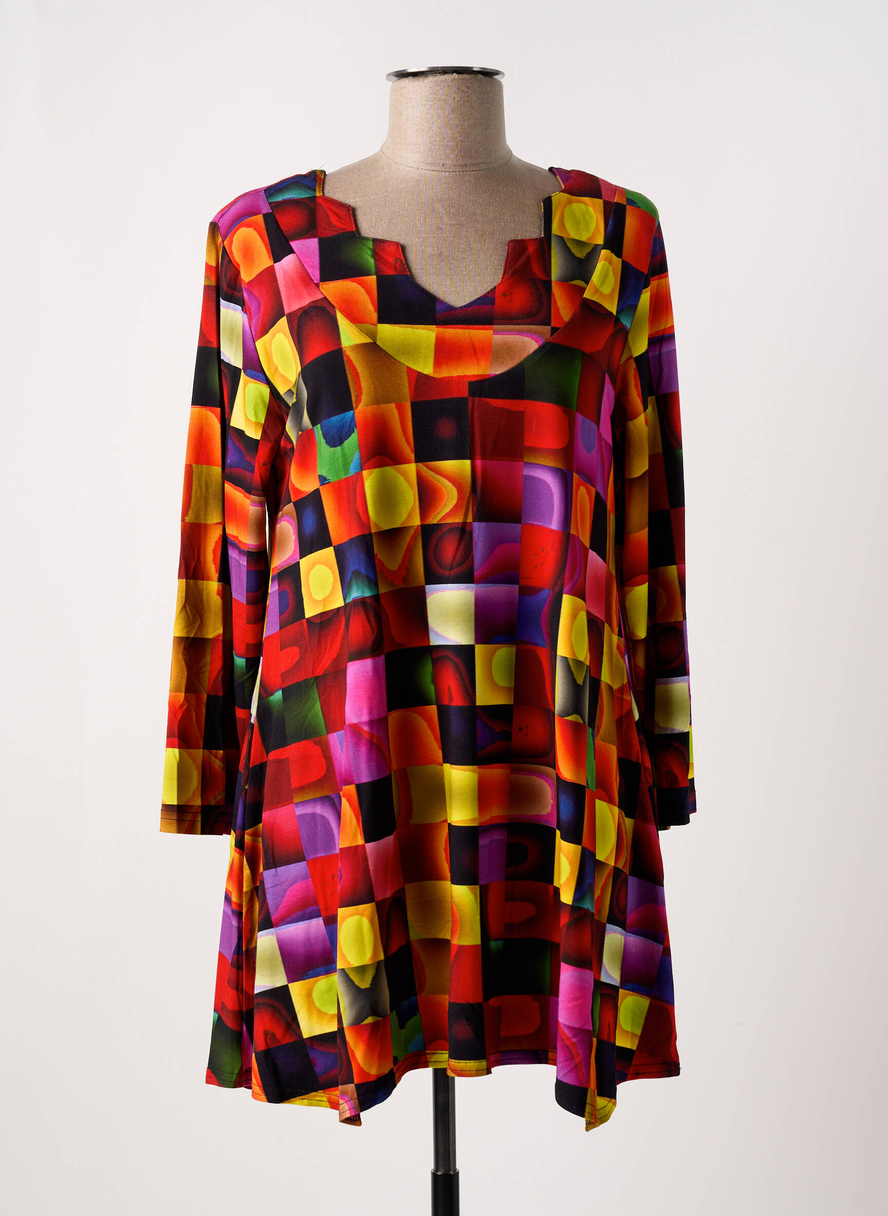 Craquez pour cette tunique manches longues de la marque OLIVER JUNG, une pièce originale à prix mini qui apporte une touche de pep’s à votre garde-robe sans vous ruiner. Son motif géométrique multicolore, vibrant et lumineux, s’accorde parfaitement avec une allure moderne et dynamique, tandis que sa coupe ample et son col fantaisie assurent tout le confort dont vous avez envie au quotidien. Un vrai bon plan pour se démarquer avec style à petit prix.