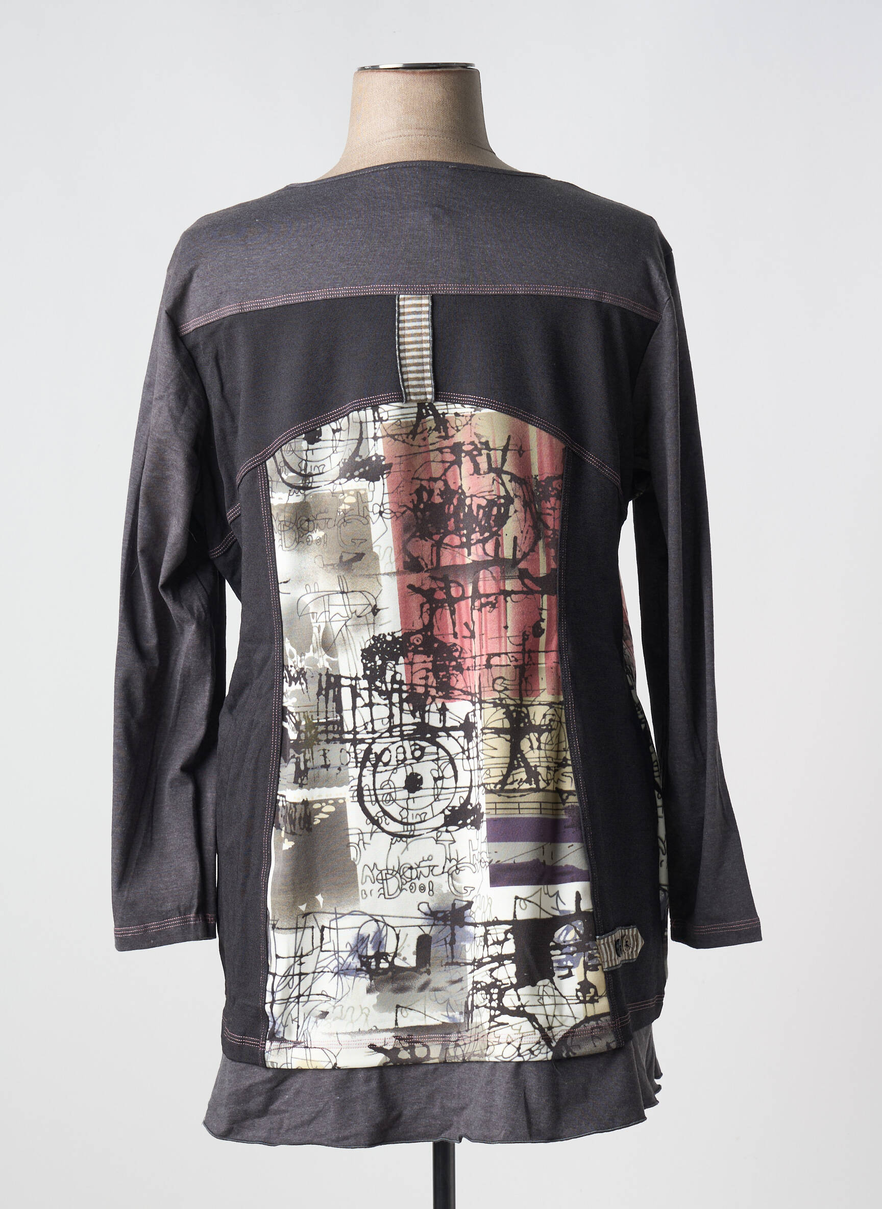 Craquez sans vous ruiner pour cette tunique manches longues signée S.QUISE, une pièce originale au prix mini qui combine confort et style avec son imprimé graphique multicolore sur le devant et ses détails de boucles fantaisie. Ce modèle est parfait pour donner du caractère à vos tenues tout en profitant d'une belle économie sur une marque tendance.