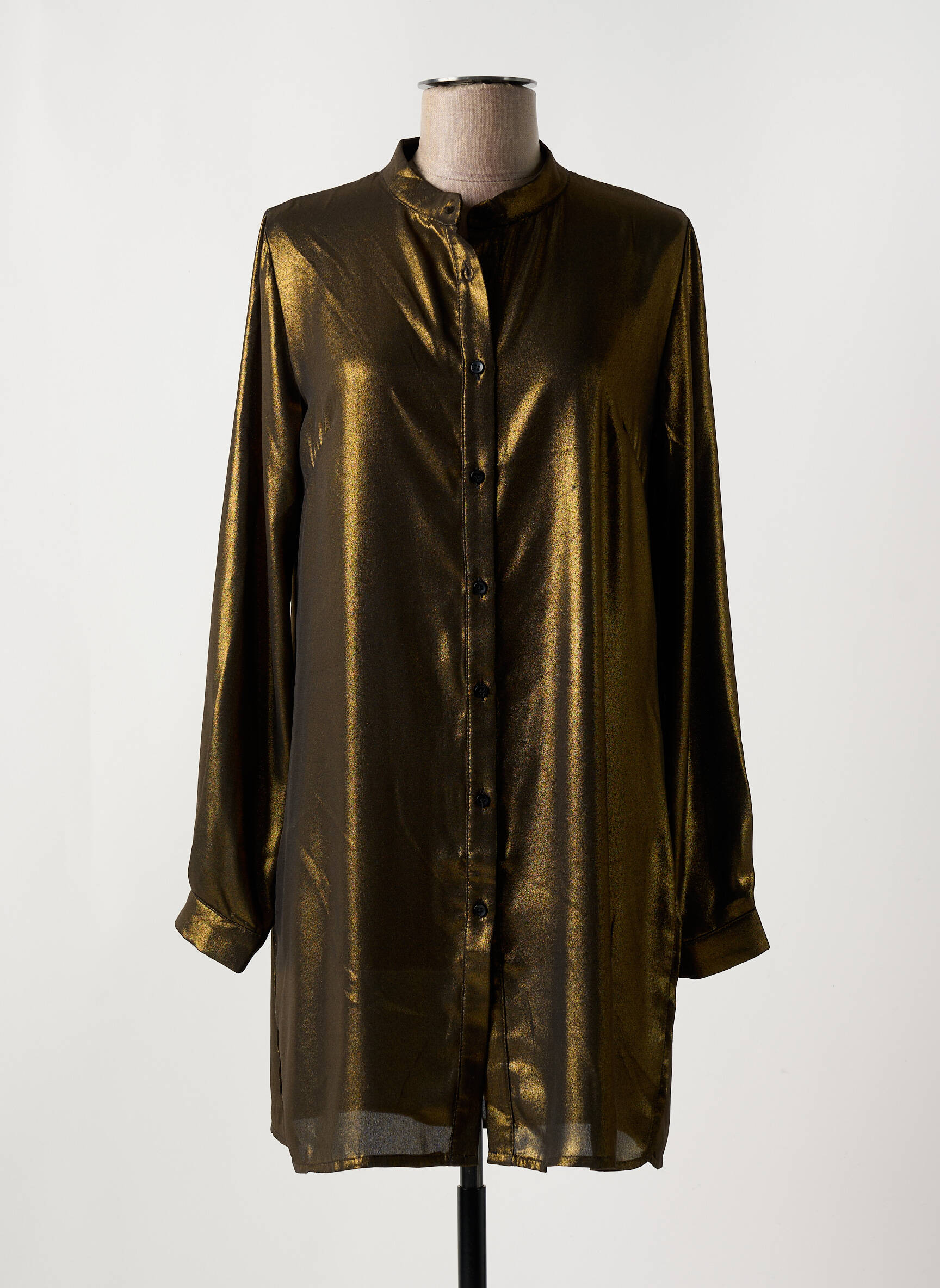 Craquez pour cette tunique manches longues SENS UNIQ qui allie élégance tendance et petit prix, idéale pour ajouter une touche de lumière à votre garde-robe sans vous ruiner. Son tissu à l’aspect métallisé doré illumine instantanément vos tenues et sa coupe fluide avec boutonnage sur le devant assure un maximum de confort tout en restant chic. Profitez d’un look sophistiqué et original à prix mini, parfait pour vos soirées ou pour dynamiser un style quotidien.