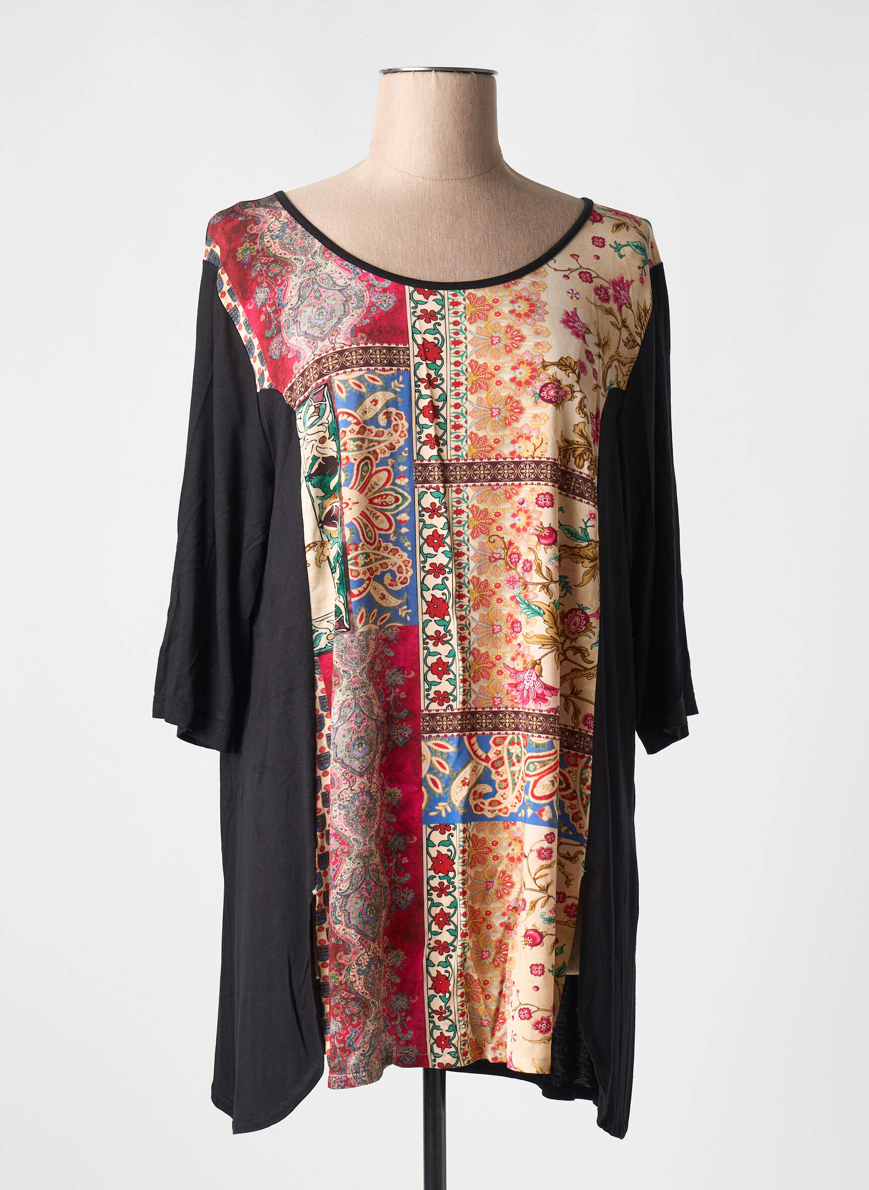 Offrez-vous un look tendance sans vous ruiner avec cette tunique manches longues signée SOPHIA CURVY, sublimée par un élégant mélange de motifs colorés d’inspiration patchwork sur le devant, contrasté par des manches et des côtés noirs pour une silhouette flatteuse. Parfaite pour dynamiser votre garde-robe à petit prix, cette tunique apportera une touche d’originalité et de confort à toutes vos tenues du quotidien.