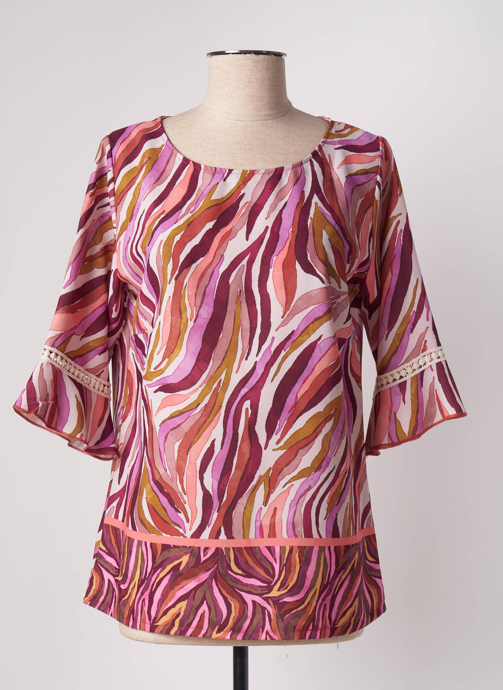 Profitez d’un véritable bon plan avec cette tunique manches longues pour femme signée UNICA PLUS, parfaite pour rehausser votre garde-robe sans vous ruiner. Son imprimé aux nuances chaudes de rose, orange et blanc apporte une note dynamique et moderne, tandis que sa coupe fluide et les détails ajourés sur les manches offrent une touche féminine et élégante, idéale pour un look stylé à petit prix.