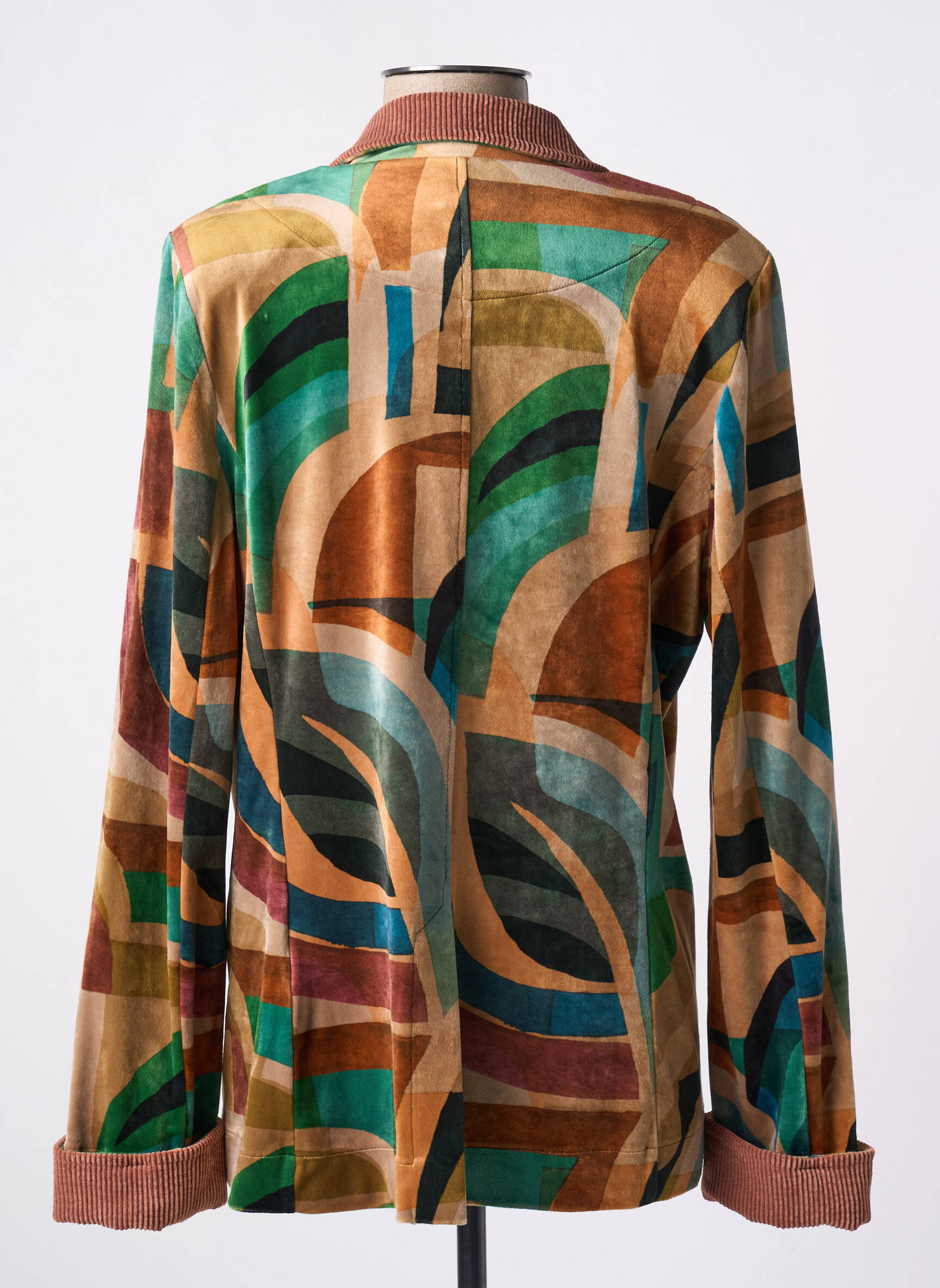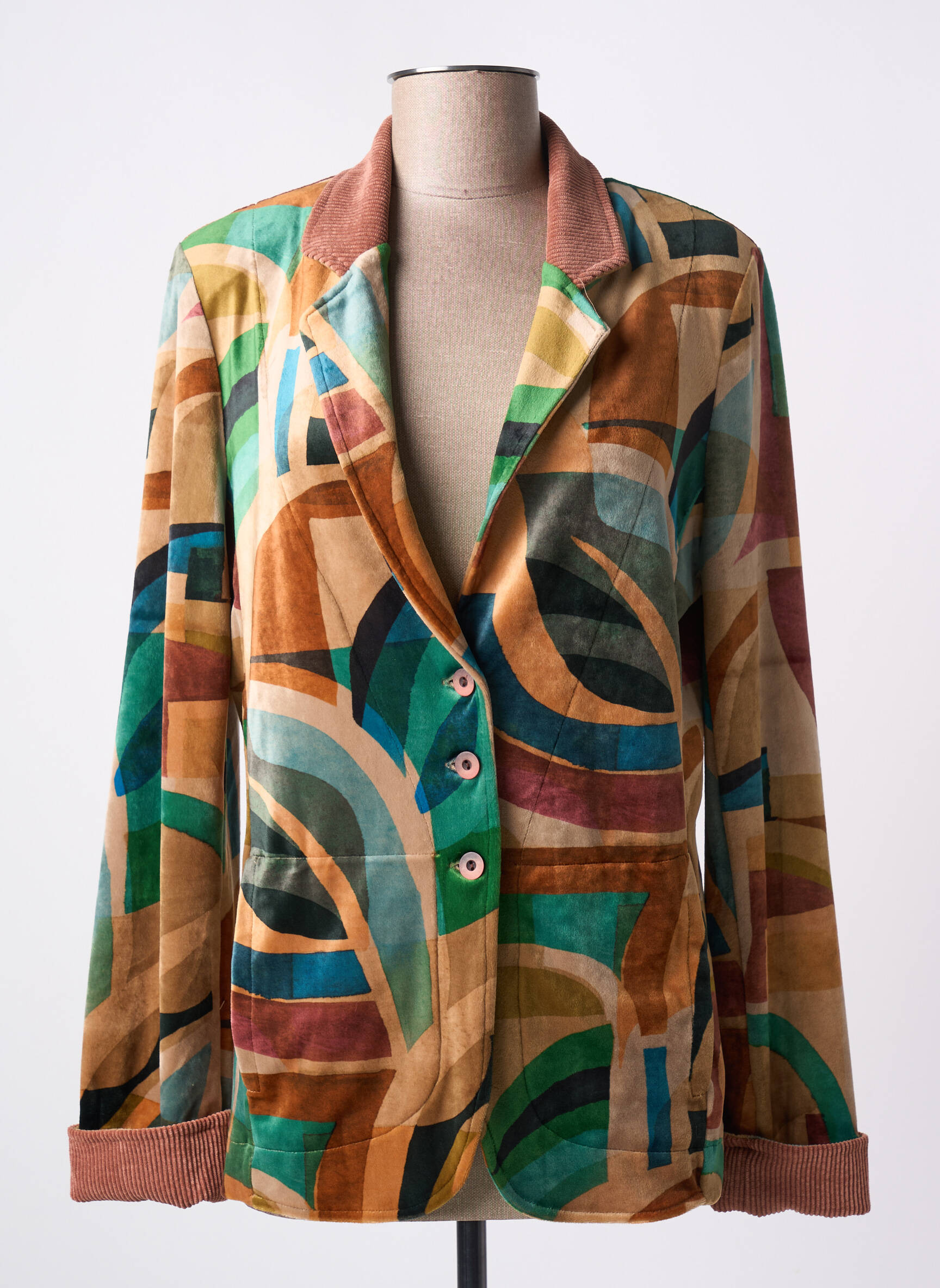 Imaginez un blazer qui semble tout droit sorti d'une œuvre d'art moderne, où chaque courbe et chaque couleur racontent une histoire unique. Ce blazer féminin signé ALDO MARTIN'S se distingue par son motif abstrait aux teintes chaudes et profondes, mêlant des nuances de rouille, vert bouteille, bleu pétrole et sable, avec des touches de rose et de jaune. Sa coupe légèrement décontractée épouse élégamment la silhouette, tandis que son col classique et ses poignets retournés en velours caramel apportent une touche de douceur et de raffinement. Les trois boutons nacrés ajoutent une subtile note de sophistication, faisant de ce blazer une pièce audacieuse et chic à adopter pour un style à la fois artistique et contemporain.