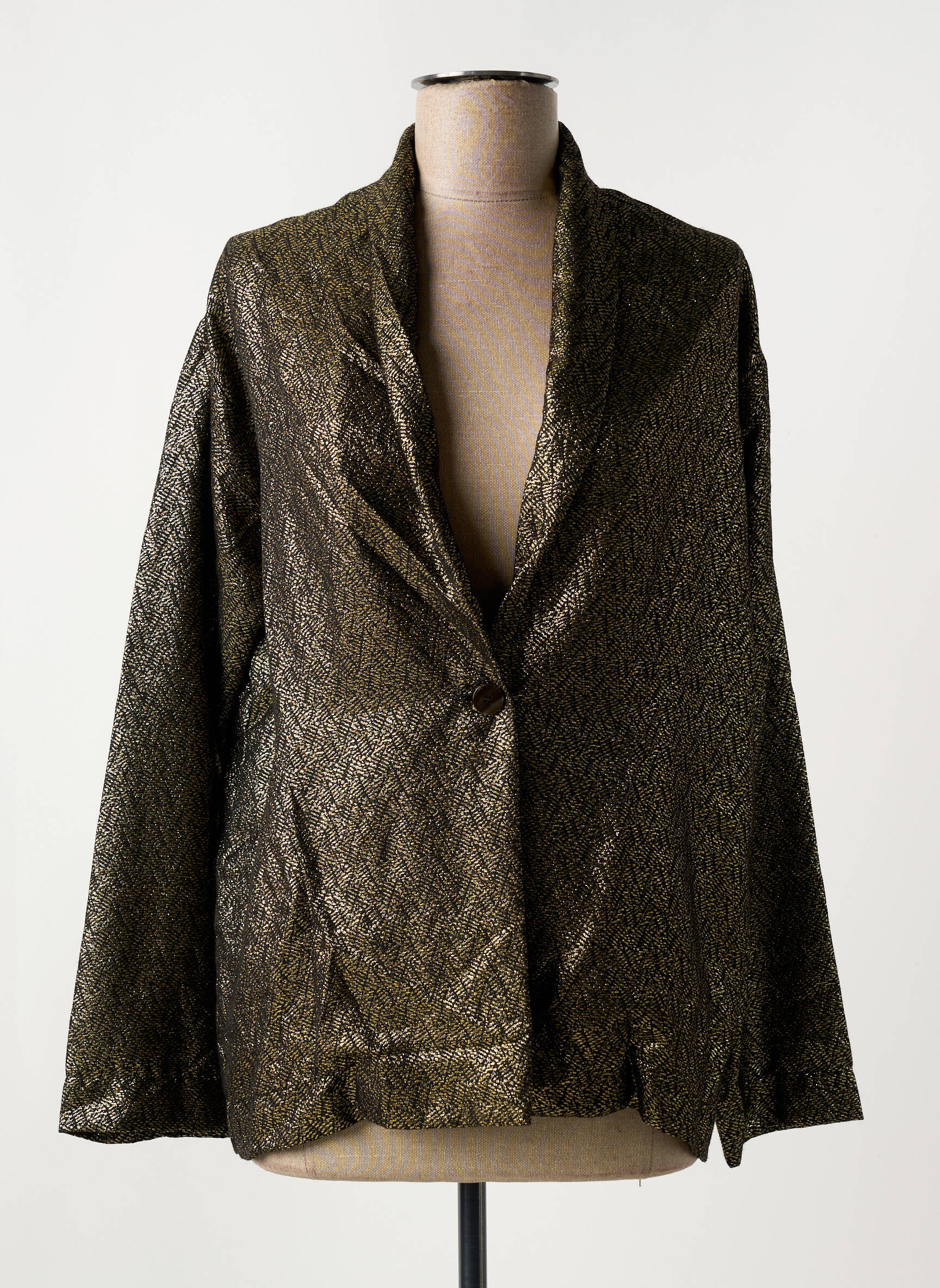 Ce blazer se marie parfaitement avec un jean brut pour une allure décontractée mais sophistiquée ou avec un pantalon noir ajusté pour une touche plus habillée. N’hésitez pas à l’associer à un top uni et des accessoires dorés pour valoriser ses reflets élégants. Pour un look plus audacieux, choisissez une jupe courte et des bottines, tout en jouant sur les contrastes de matières pour un effet résolument moderne.