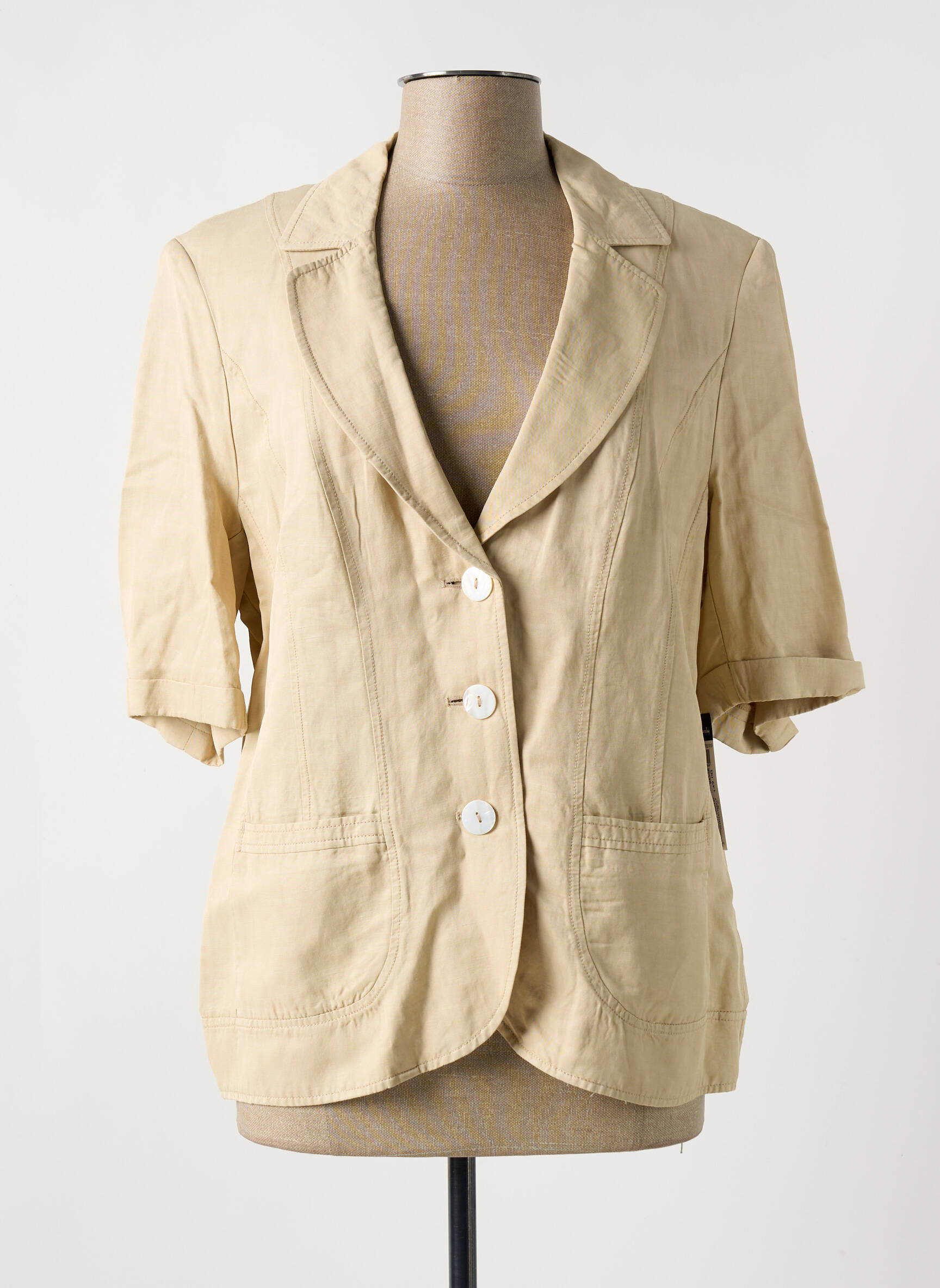 Profitez d'une belle opportunité mode avec ce blazer BETTY BARCLAY pour femme à prix mini, parfait pour celles qui veulent allier élégance et économies. Ce modèle à la coupe classique se distingue par sa teinte beige subtile et son tombé fluide, souligné par de jolies manches mi-longues légèrement froncées. Doté de poches discrètes et de trois boutons nacrés sur le devant, il offre une allure chic et polyvalente, idéale pour compléter aussi bien un look décontracté qu'une tenue plus sophistiquée. Saisissez ce bon plan pour renouveler votre dressing tout en prenant soin de votre budget.