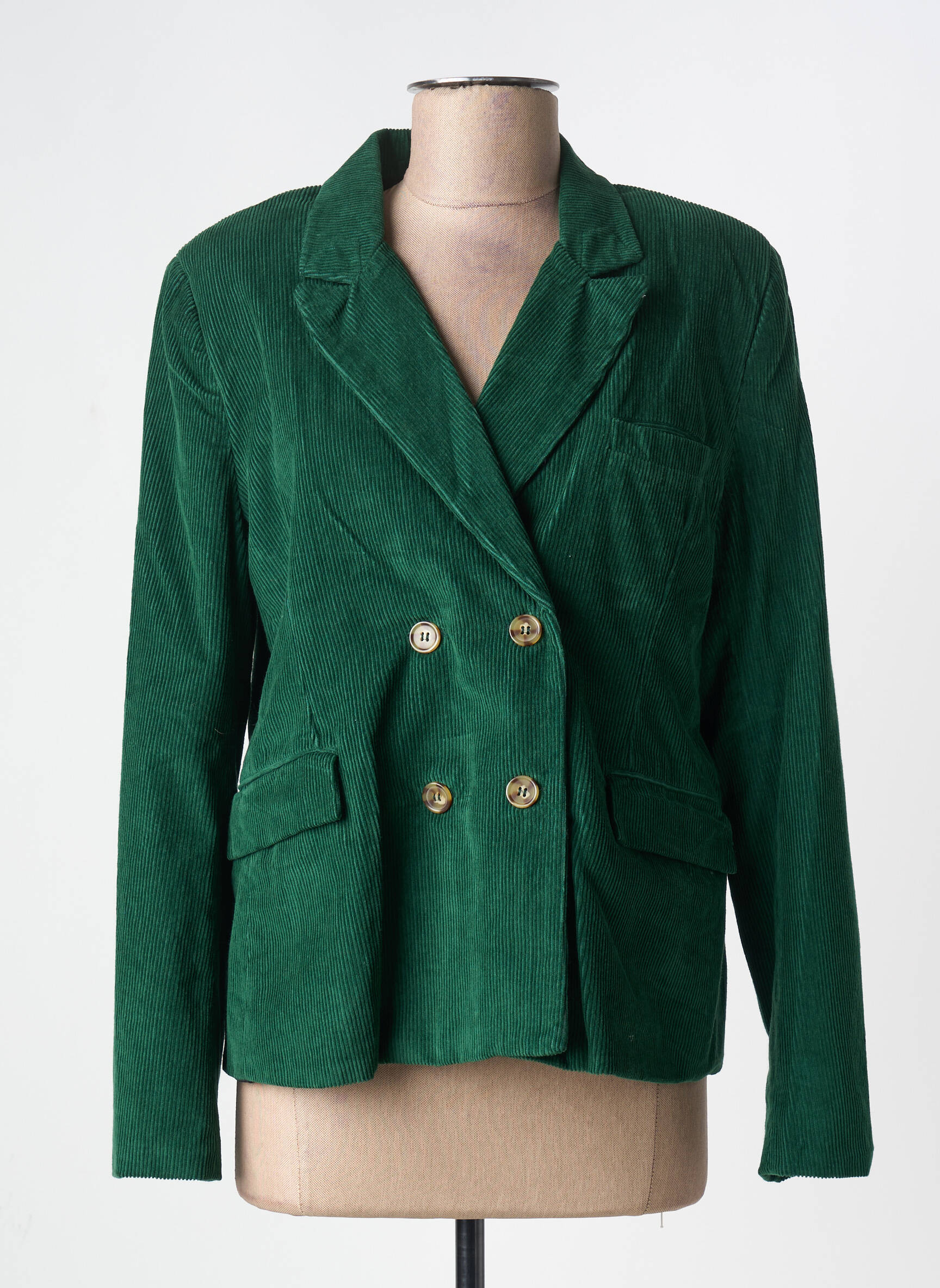 Ce blazer CHARLIE JOE pour femme est la pièce idéale pour rehausser votre look à petit prix grâce à ses détails chics et sa coupe intemporelle. Confectionné dans un velours côtelé vert profond, il offre un effet texturé élégant, tandis que sa fermeture croisée à boutons dorés ajoute une touche sophistiquée et tendance. Profitez d’un véritable bon plan pour adopter une allure moderne et raffinée sans vous ruiner, tout en misant sur un style unique et résolument mode.