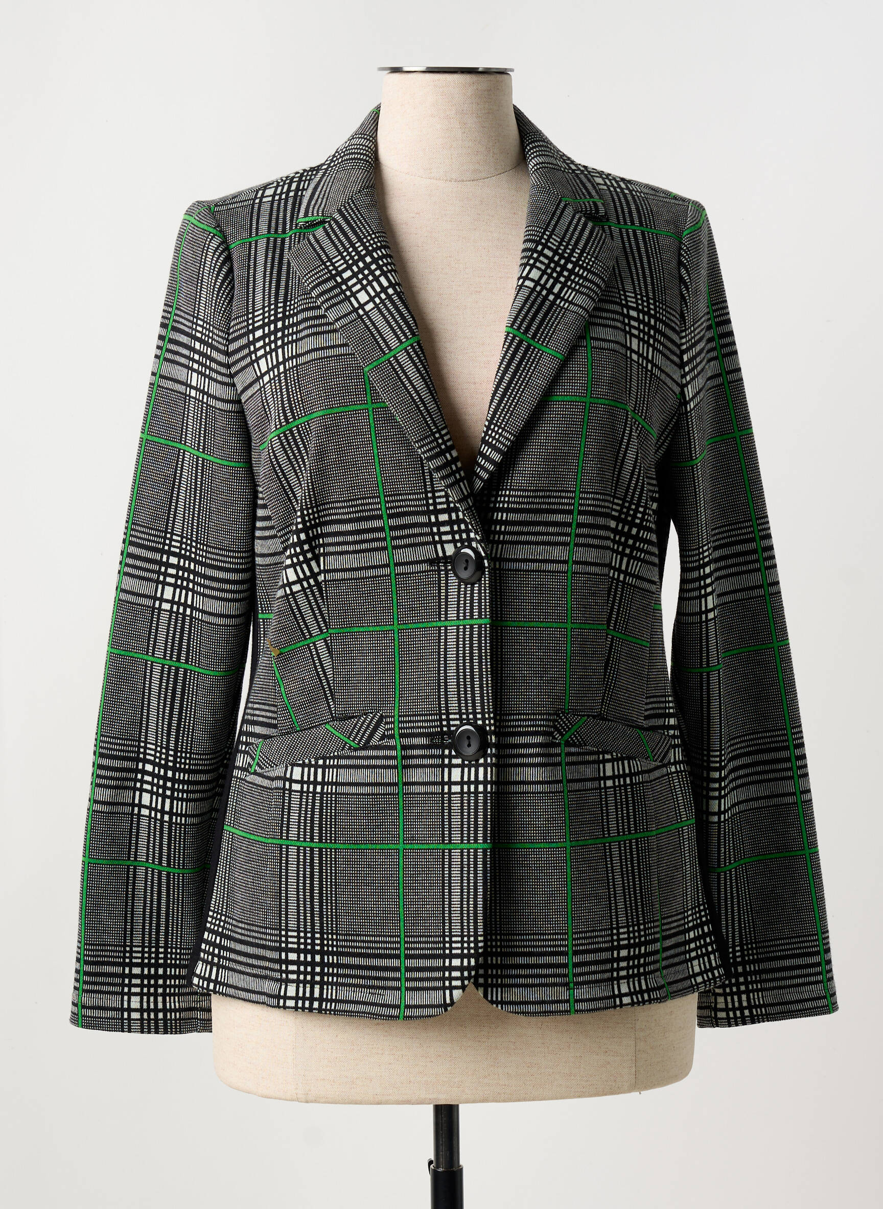 Profitez d’un vrai bon plan avec ce blazer FRANK WALDER pour femme, qui allie élégance intemporelle et petits prix. Sa coupe classique et structurée met en valeur la silhouette tandis que le motif à carreaux noirs et gris rehaussé de discrètes lignes vertes apporte une touche de modernité. Les deux boutons à l’avant ainsi que les poches à rabat soulignent l’allure sophistiquée de ce modèle, idéal aussi bien pour le bureau que pour vos sorties en ville. Grâce à ce blazer, ajoutez une pièce chic et tendance à votre dressing sans compromis sur votre budget.