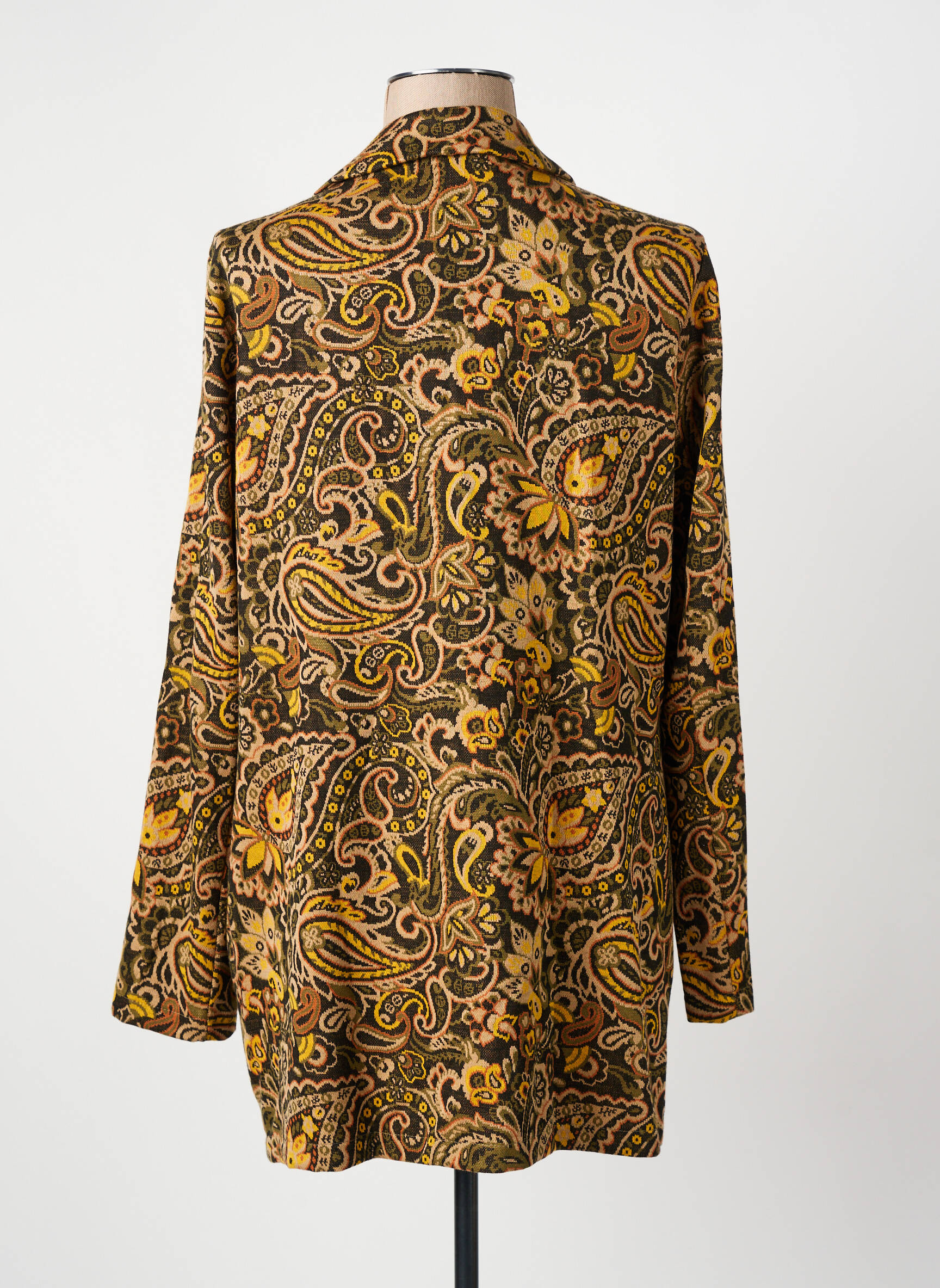 Craquez pour ce blazer Fred Sabatier pour femme et profitez d’un look sophistiqué à prix mini grâce à notre sélection déstockage. Avec son motif paisley élégant dans des tons dorés, noirs et ocre, il apporte une touche d’originalité tout en restant résolument chic. La coupe longue et le tombé impeccable en font une pièce parfaite pour dynamiser toutes vos tenues, du bureau à la soirée, sans exploser votre budget.