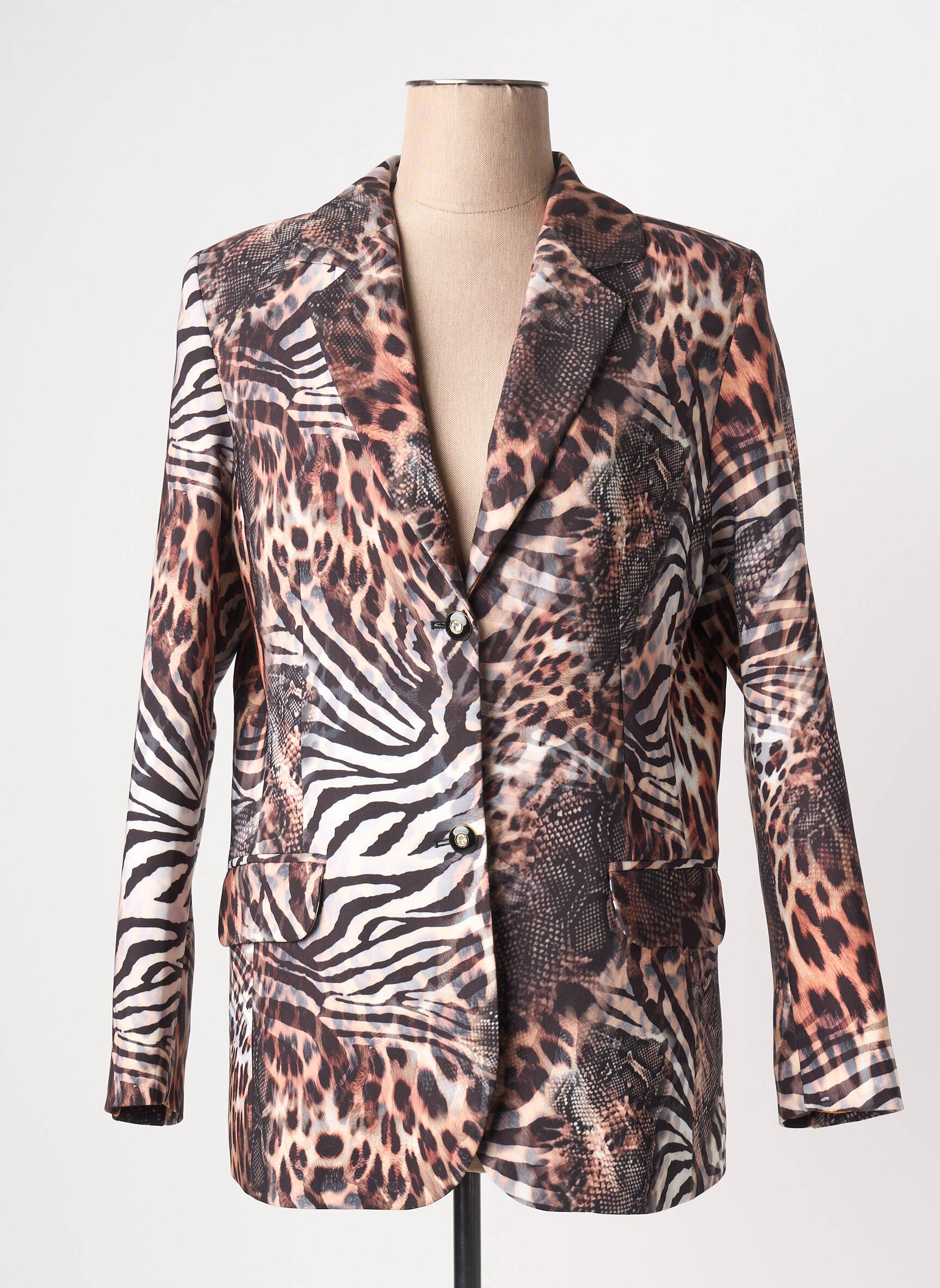 Craquez pour ce blazer pour femme de la marque GREGORY PAT à prix mini, parfait pour apporter une touche sauvage et tendance à votre garde-robe sans vous ruiner. Son imprimé animalier mêle motifs zébrés et léopard pour un effet visuel unique qui booste instantanément tous vos looks, que ce soit pour une soirée, le bureau ou un style décontracté-chic au quotidien. Il s’impose comme le bon plan du moment pour celles qui veulent se démarquer avec une pièce originale, tout en profitant de belles économies.