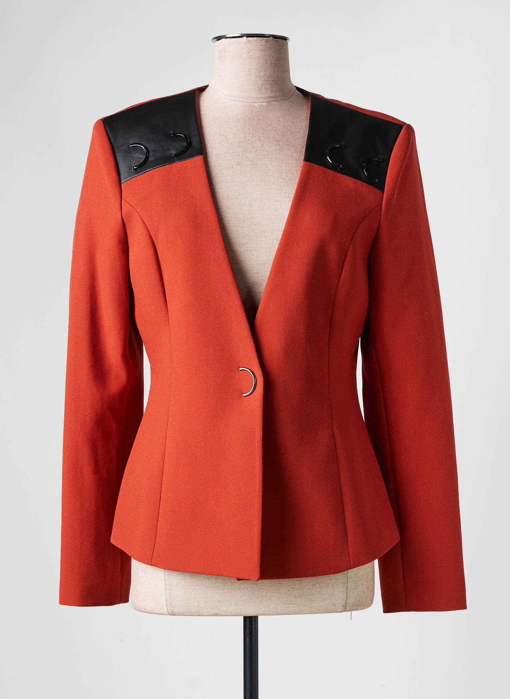 Profitez d’un bon plan incontournable avec ce blazer signé GREGORY PAT, à la coupe moderne et structurée, qui se distingue par sa couleur chaleureuse et ses empiècements noirs effet cuir sur les épaules. Cet incontournable du dressing féminin mise sur une allure élégante et originale, parfait pour se démarquer sans se ruiner. Saisissez cette opportunité d’afficher un style sophistiqué à prix mini !