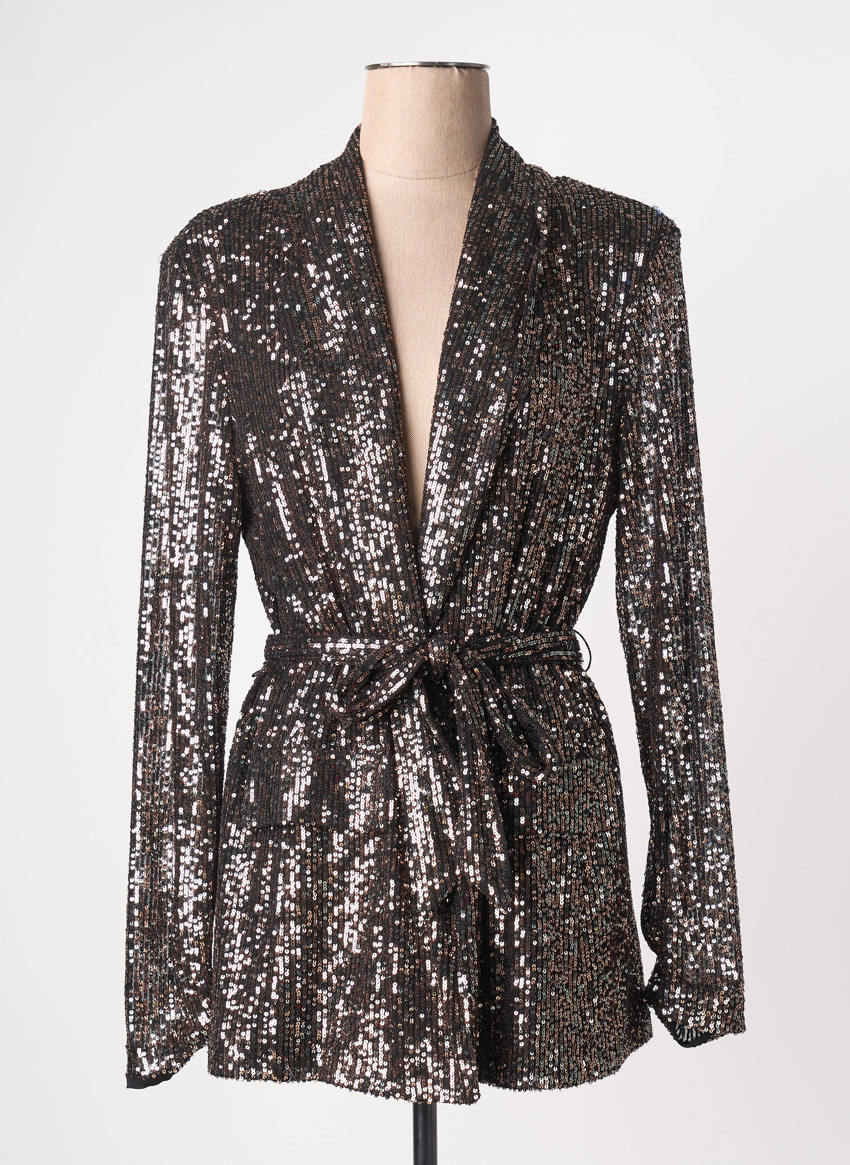 Offrez-vous une pièce d’exception à prix tout doux avec ce blazer JOSEPH RIBKOFF pour femme, un modèle sophistiqué entièrement orné de sequins étincelants qui capte la lumière à chaque mouvement. Sa coupe élégante, légèrement cintrée grâce à une ceinture nouée à la taille, sublime la silhouette pour une allure chic lors de toutes vos soirées. C’est le moment ou jamais de craquer pour une veste à l’effet waouh sans se ruiner, idéale pour twister vos tenues avec une touche glamour à prix mini.