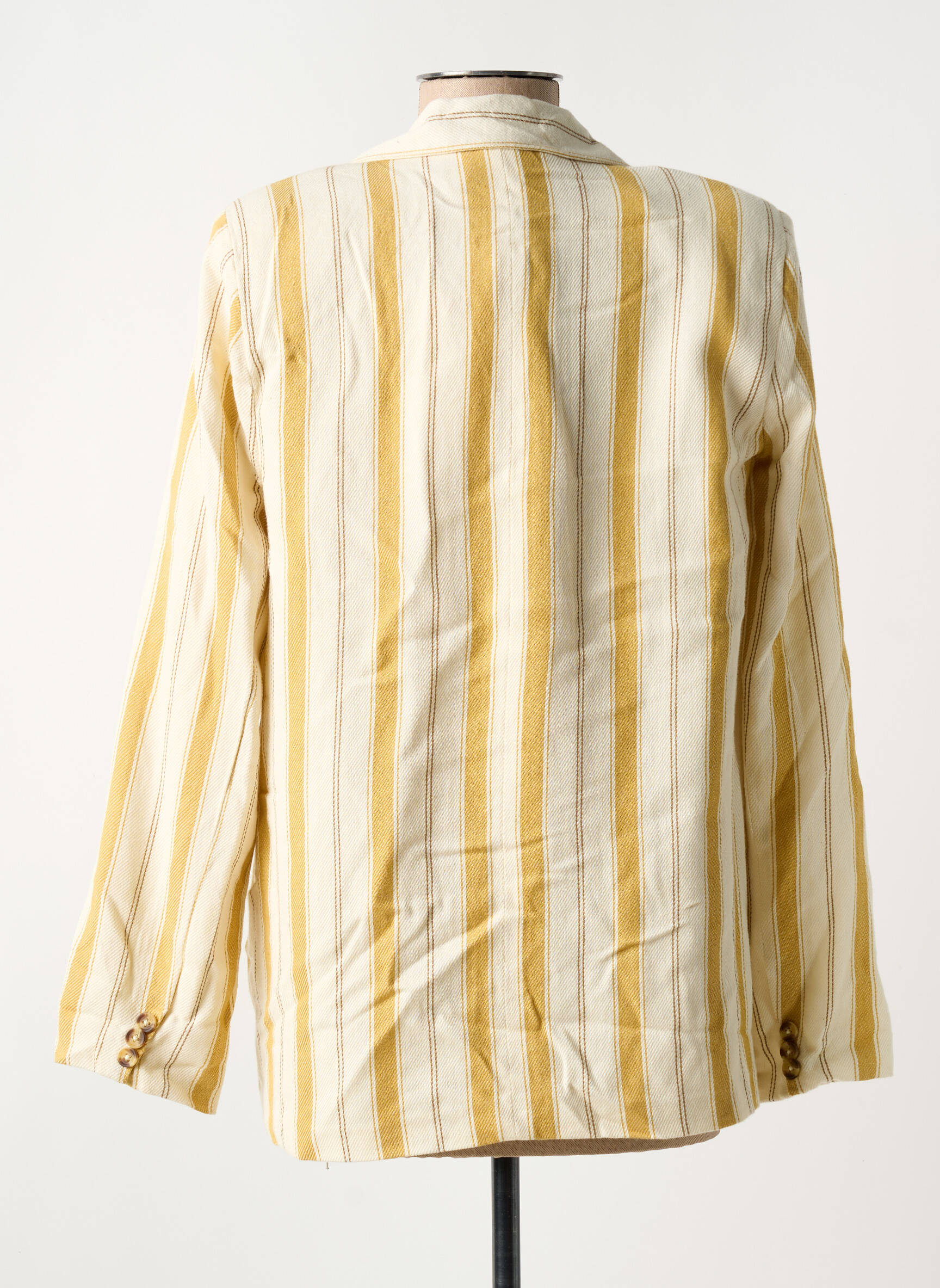 Craquez pour ce blazer LA PETITE ETOILE à prix mini, parfait pour apporter une touche tendance à votre dressing sans vous ruiner. Avec son élégant motif à rayures jaune doré et blanc, il se distingue par une allure chic et décontractée, soulignée par une coupe légèrement oversize et des boutons distinctifs sur le devant. Les poches à rabat complètent ce look moderne, idéal pour un style affirmé au quotidien à petit prix.