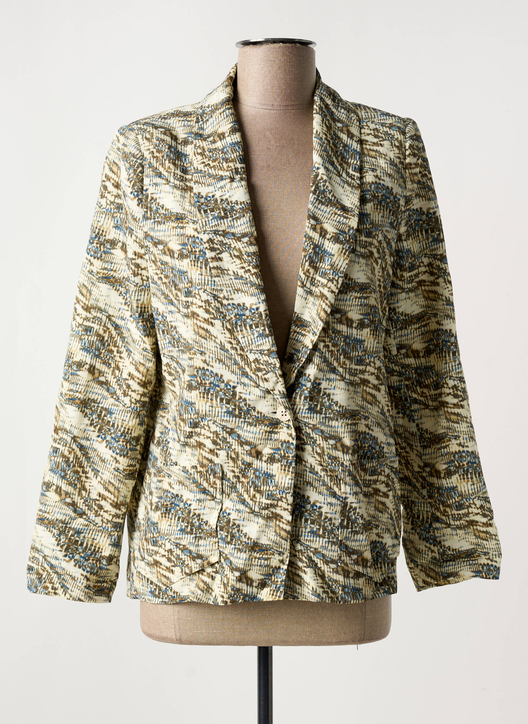 Profitez d’un véritable bon plan avec ce blazer LA PETITE FRANCAISE pour femme, à prix doux, qui allie élégance et originalité avec son motif graphique unique et ses nuances subtiles de beige, bleu et doré. Sa coupe droite et son col tailleur apportent une touche chic à toutes vos tenues, parfait pour dynamiser un look quotidien ou rehausser une tenue de soirée sans vous ruiner. C’est le choix malin pour renouveler votre garde-robe tout en réalisant de vraies économies.