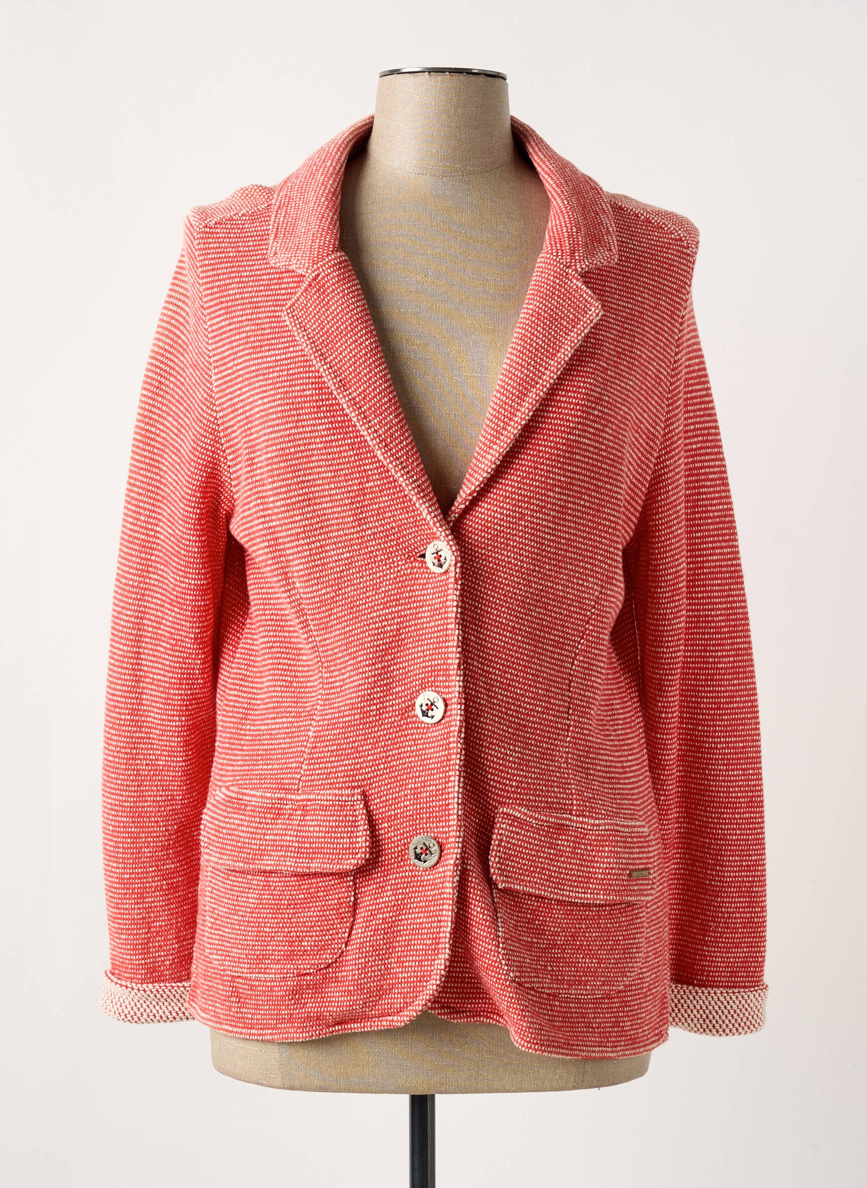 Profitez d’un bon plan mode avec ce blazer pour femme signé Mat de Misaine, à la fois élégant et confortable, proposé à prix mini. Sa coupe droite intemporelle et sa texture côtelée apportent une touche d’originalité à votre tenue, tandis que la teinte corail dynamise votre look avec fraîcheur. Les poches à rabat et les boutons contrastés ajoutent un charme décontracté parfait pour sublimer tous vos ensembles sans vous ruiner.