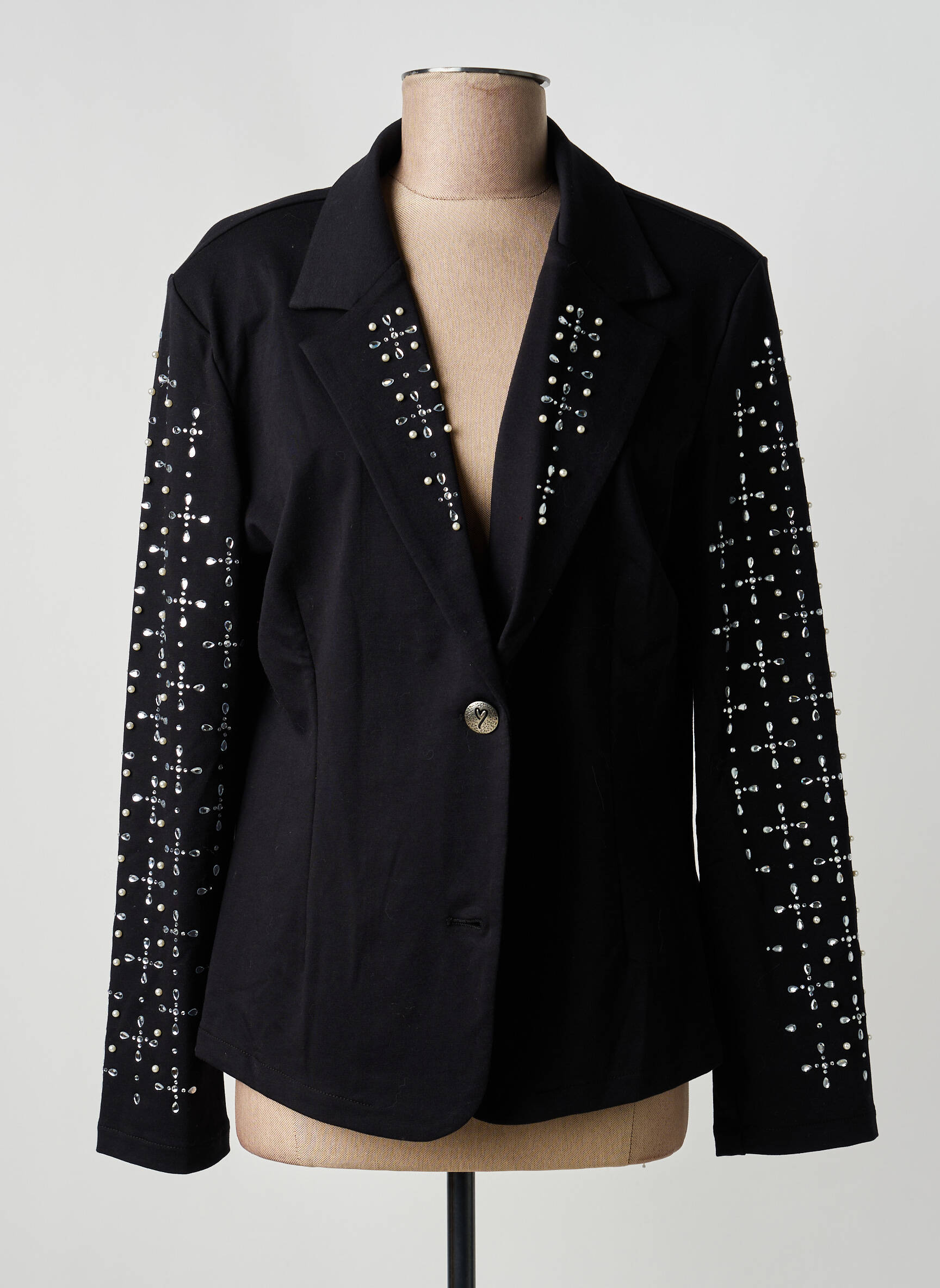 Profitez d’un vrai bon plan avec ce blazer pour femme signé MISSY, parfait pour donner une touche sophistiquée à vos tenues sans vous ruiner. Ce modèle noir classique se distingue par ses manches et son devant délicatement ornés de strass, créant un jeu de lumières subtil mais résolument tendance pour briller en journée comme en soirée. Sa coupe élégante à un bouton met en valeur la silhouette tout en restant facile à assortir, ce qui en fait une pièce chic et abordable à ne pas laisser passer.
