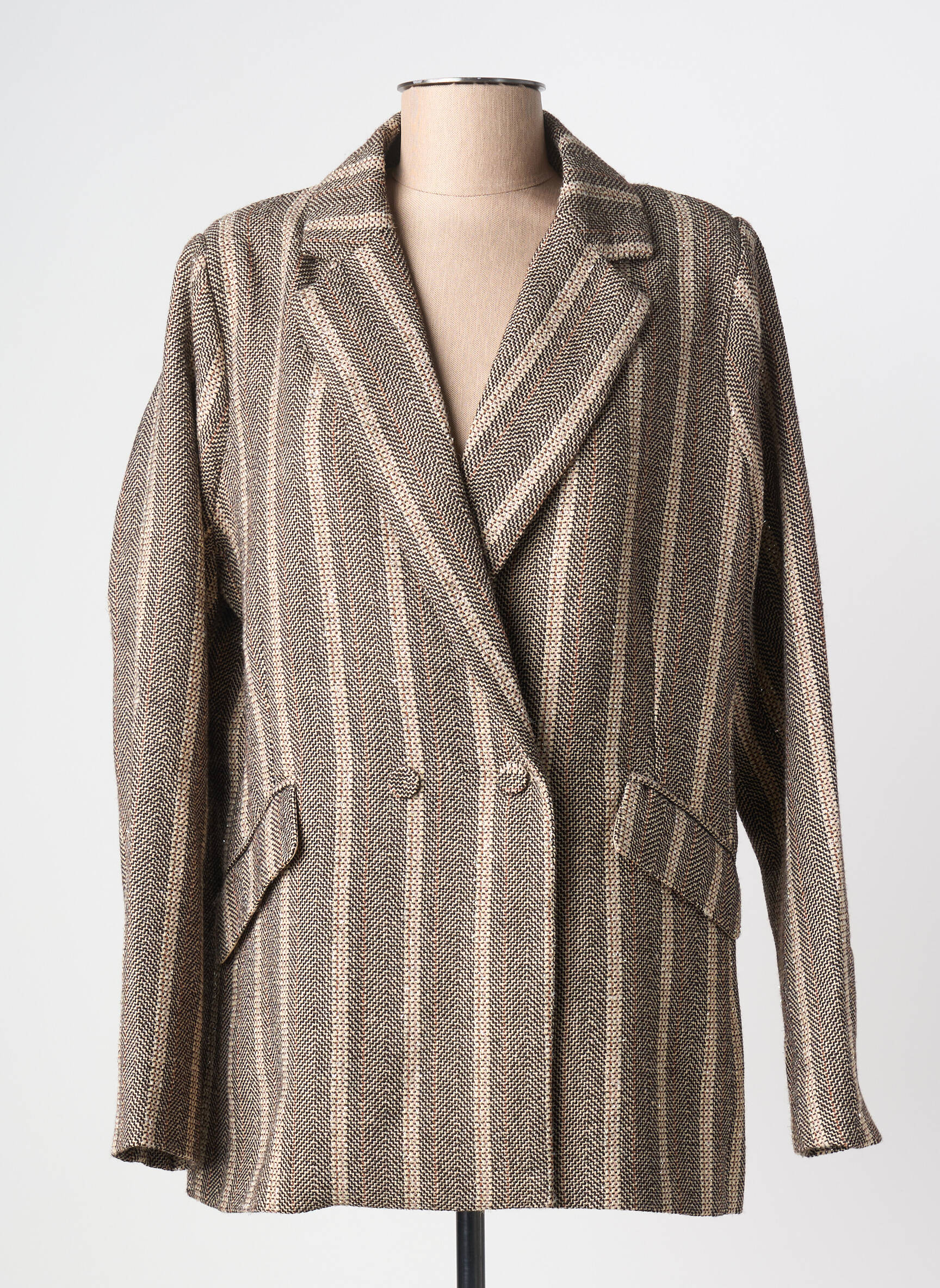 Craquez pour ce blazer femme de la marque Molly Bracken à prix mini, un véritable bon plan pour apporter une touche tendance à votre garde-robe sans vous ruiner. Avec sa coupe droite légèrement oversize et son motif à rayures verticales dans des tons naturels, il crée un look chic et décontracté tout en s’adaptant facilement à toutes vos envies de style. Ses poches à rabat et son double boutonnage soulignent son allure élégante, idéale aussi bien pour le bureau que pour une sortie entre amies, le tout à prix doux grâce à notre sélection déstockage multi-marques.